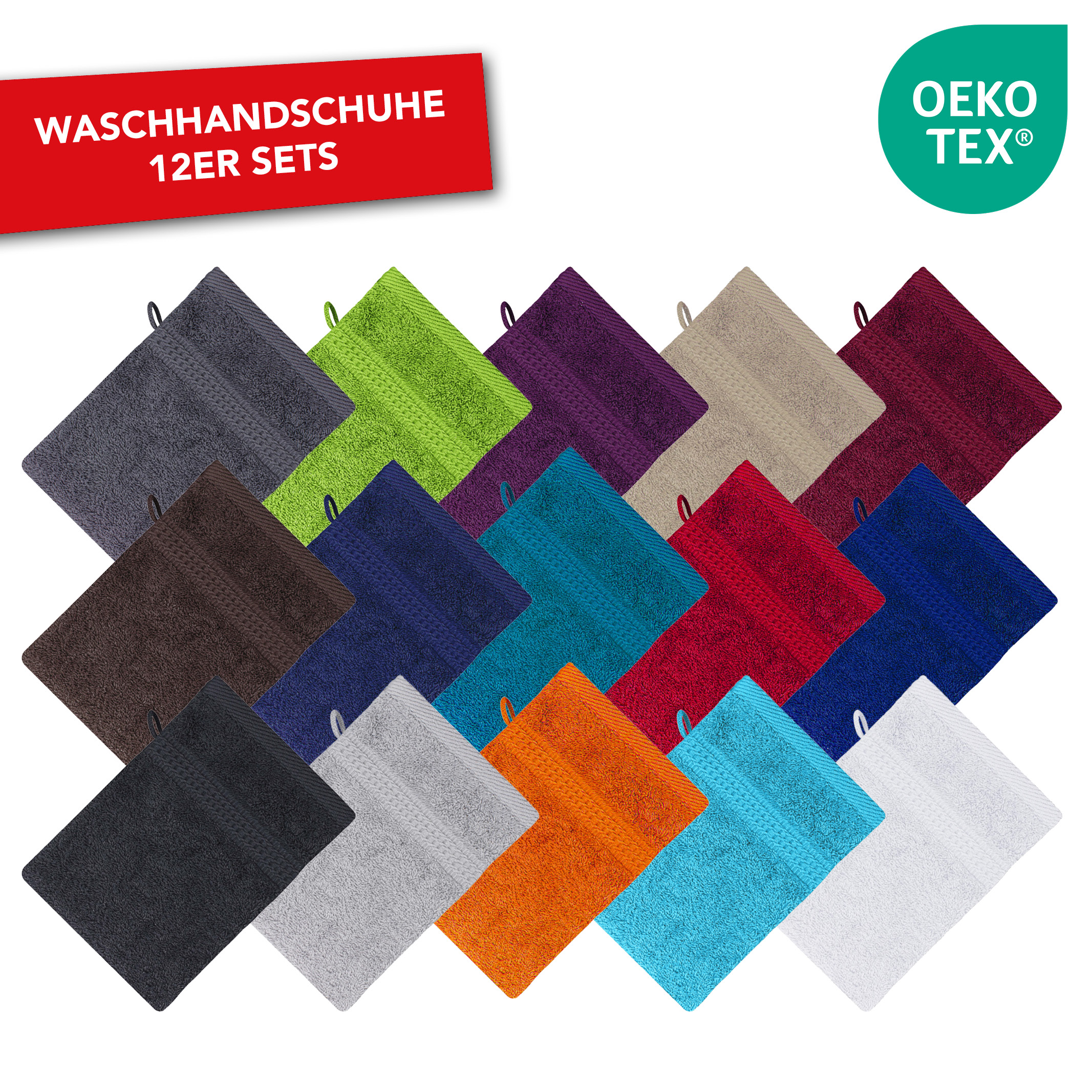 12er Set Waschhandschuhe Waschlappen 100% Baumwolle Frottee 16x21 Seifentücher