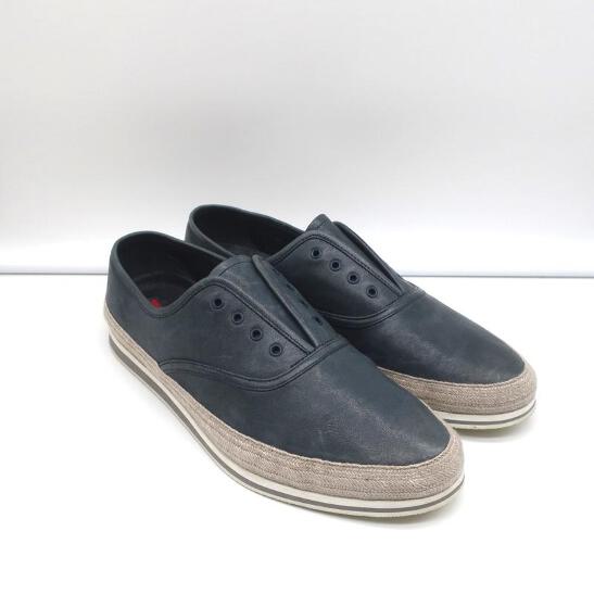 Prada Linea Rossa navy leather espadrille sneakers in a women's US 7 bring Prada's sporty, technical-luxe sensibility to a relaxed, everyday silhouette that pairs elevated craftsmanship with casual ease.