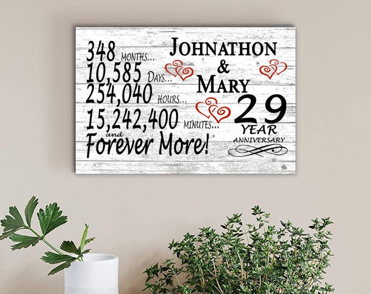 Twenty-nine years of love, laughter, and life together — and one more to the big 30. Celebrate this milestone with a personalized 29th anniversary gift sign handcrafted from solid wood and custom printed with both names — a beautiful, lasting keepsake they’ll display with pride.