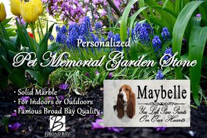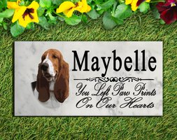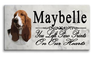 Honor your beloved Basset Hound with a personalized memorial stone handcrafted from solid marble β custom printed with their name and years. A beautiful, lasting tribute for garden, home, or graveside.
