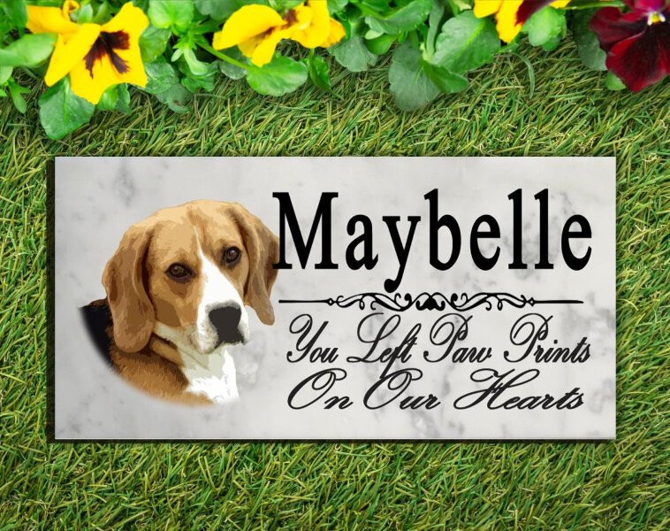 Honor your beloved Beagle with a personalized memorial stone handcrafted from solid marble β custom printed with their name and years. A beautiful, lasting tribute for garden, home, or graveside.