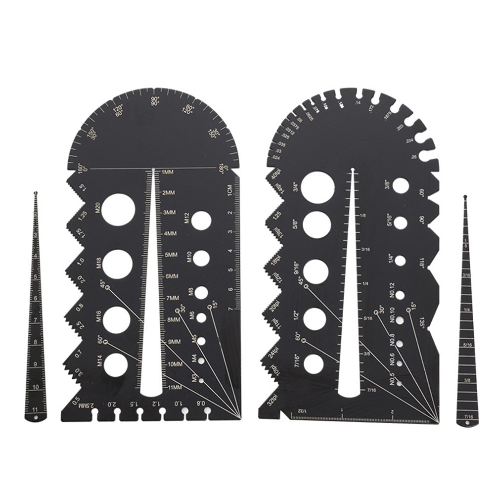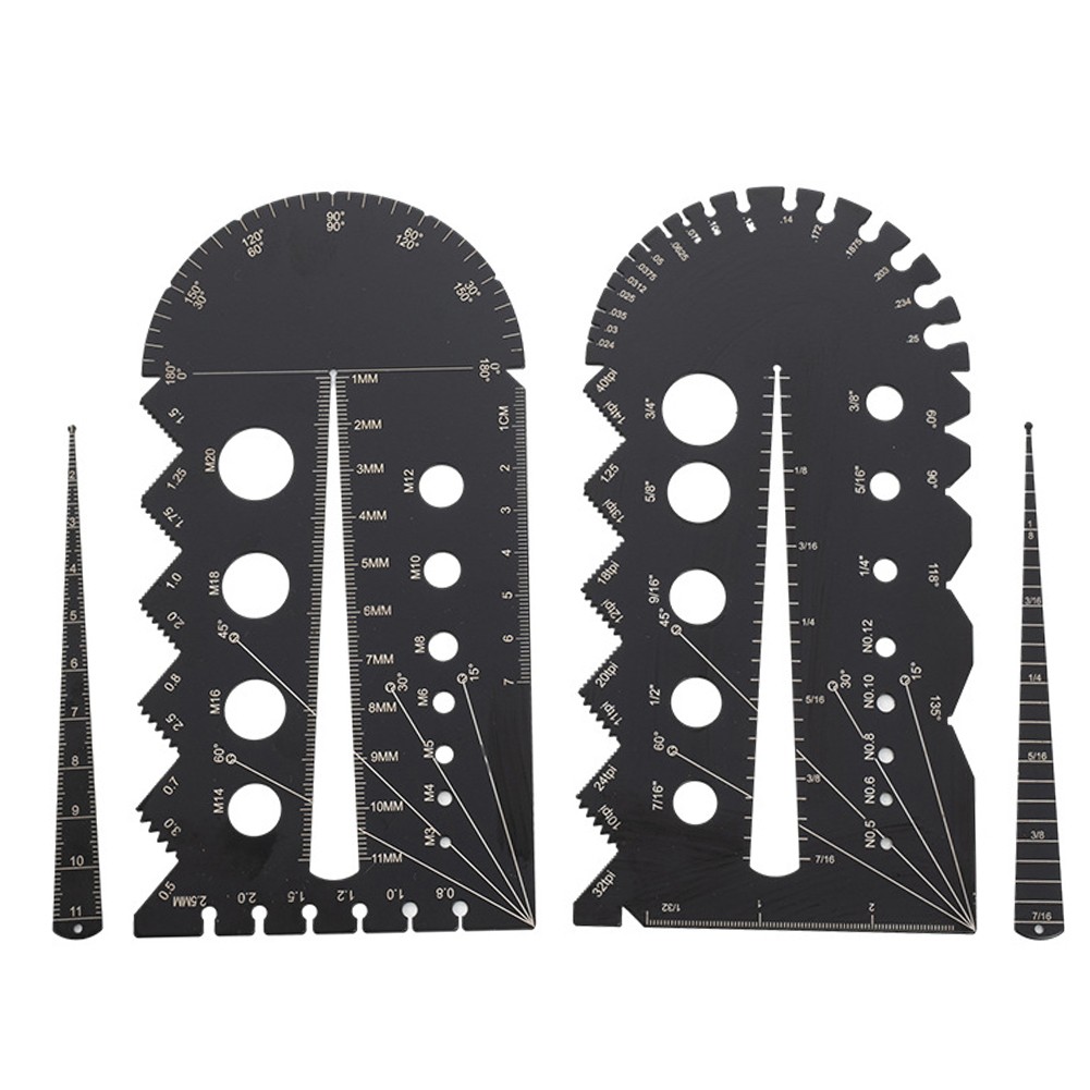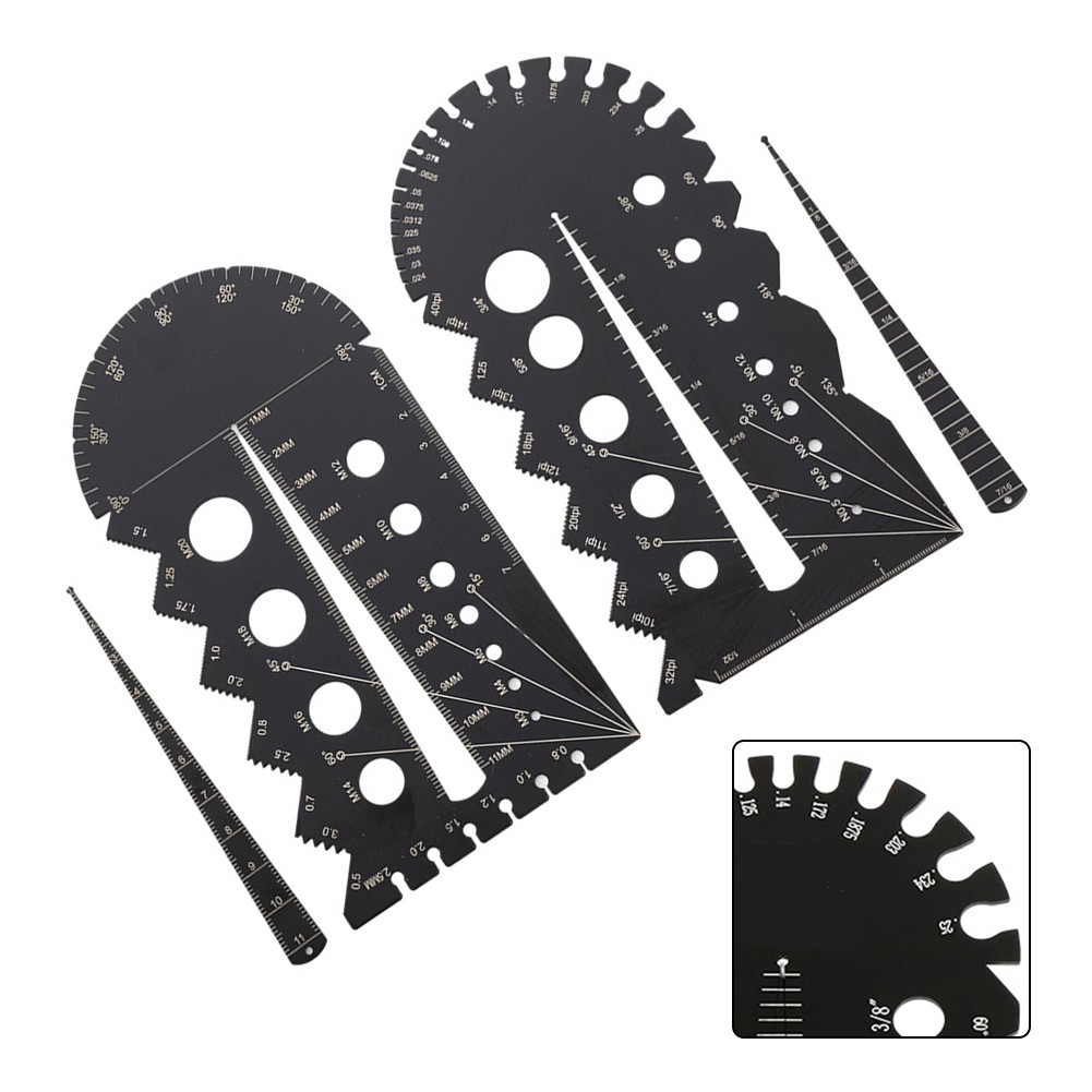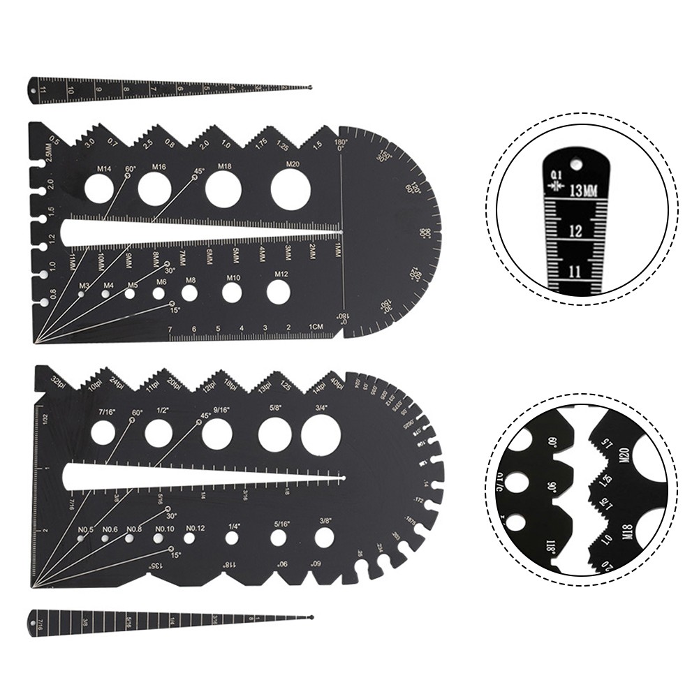 Von Autoreparatur bis hin zu Heimbauprojekten ist dieses Maßgerät unerlässlich zur Messung von Bolzen, Schrauben und verschiedenen Größen. Es deckt einen breiten Bereich von Größen ab, von #4 bis zu 1" in Länge und von 3 mm bis 22 mm für metrische Verbindungselemente.