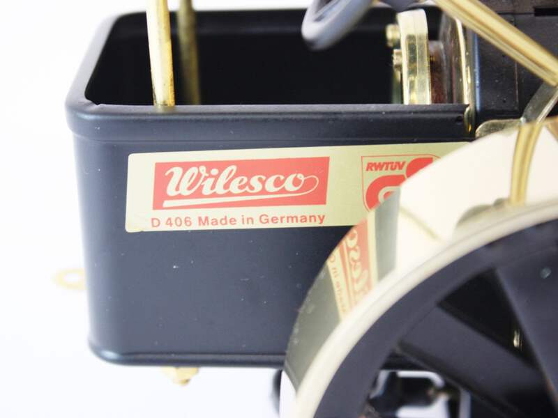This steam tractor, painted in black and with polished brass accents, was modeled after an original Wilesco tractor seen in the early 19th century on our roads. The original tractor was uséd for agricultural and forestry work. A beautiful model for collectors.