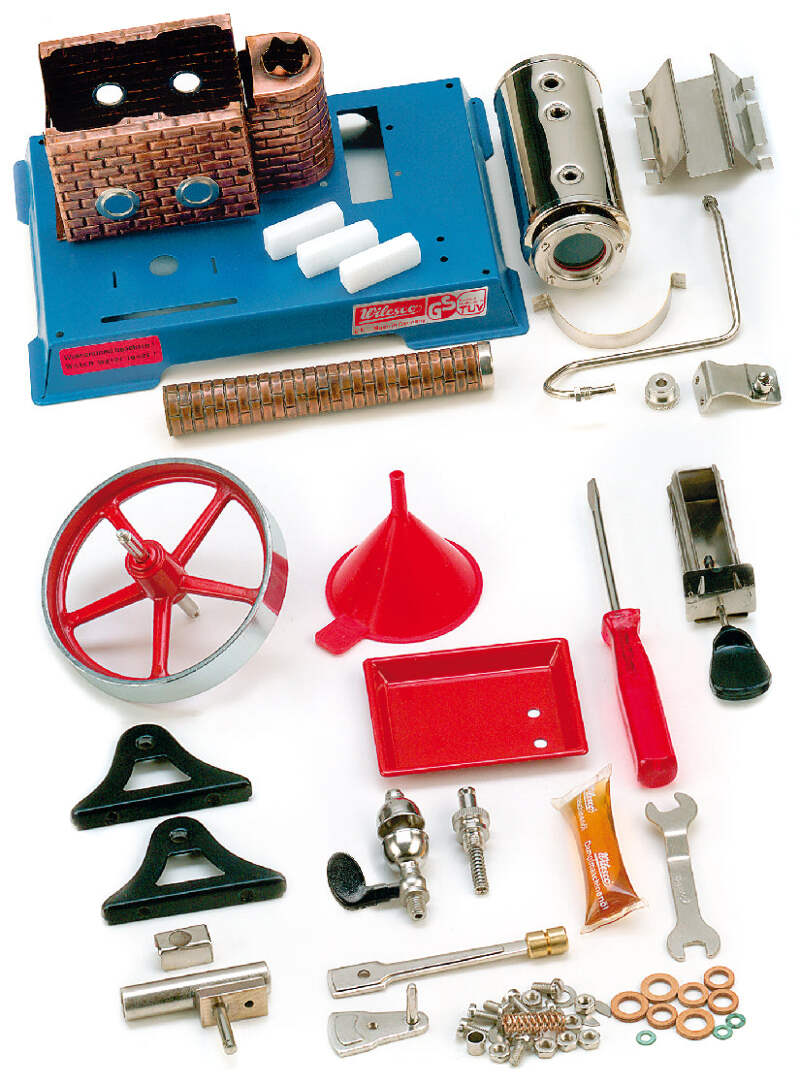 With this Wilesco D 5 kit, steam fans are shown how nostalgic energy is created. For this purpose, every kit contains an easy to understand and illustrated instruction pamphlet. Even the least experienced model builder can assemble this kit in a very short time. The assembly contains no soldering work as all components are screwed together. This kit has the same specifications as the factory produced D 6 Steam Engine.