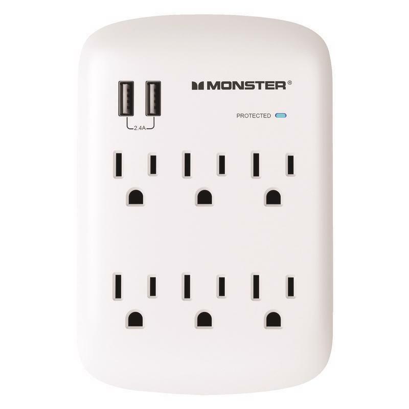 Just Power It Up by Monster offers reliable and secure power protection, backed by the company's decades of expertise in the field. With a history dating back to 1975, Monster has consistently set the standard for top-quality power protection, featuring the most advanced technology for optimal performance and safety. Always Lead. Never Follow. A surge protector wall tap is a compact and convenient device that provides protection for your electronic devices against voltage spikes. This wall tap features multiple outlets including USB ports, allowing you to plug in multiple devices at once, and it has Clean Power filters to block interference. It also has a sleek and compact design that blends seamlessly with your home or office decor. This surge protector wall tap is easy to install, and it provides peace of mind knowing that your devices are protected from damaging power surges. Whether you're using it at home, in the office, or on the go, this surge protector wall tap is an essential tool for keeping your devices safe and running smoothly.