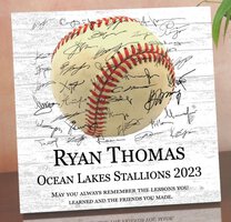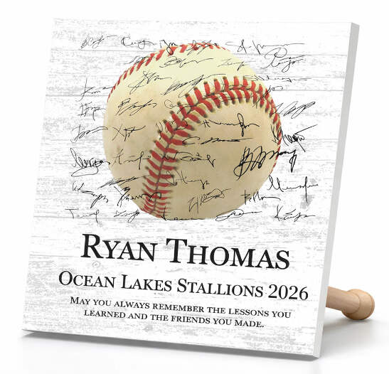 Recognize the dedication, hustle, and heart that made this season special. This personalized signable baseball award plaque is handcrafted from solid wood, custom printed with the player or coach’s name, team, and year — with a signable surface for teammates and coaches to add their messages.