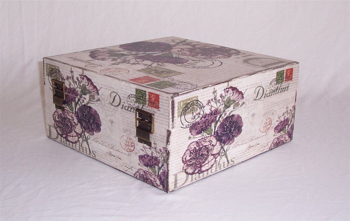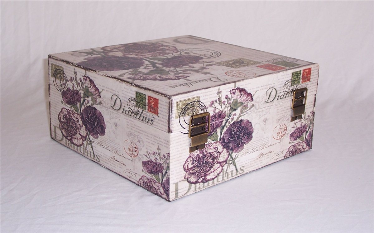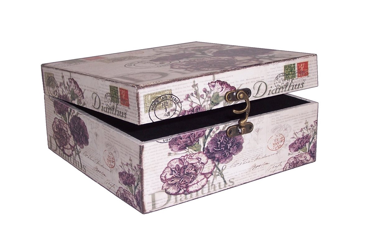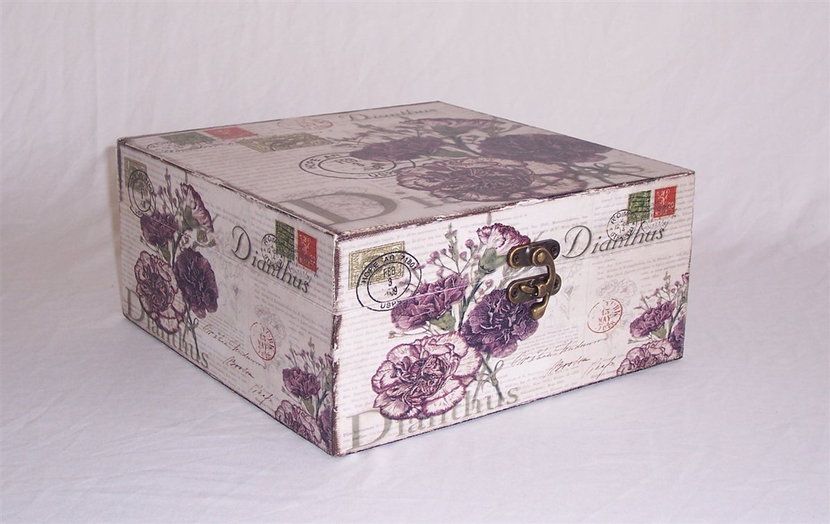 Massivholz Box in Leinenoptik, Flora Nr. 530, kunstvolle Verarbeitung, Metallbeschläge und Metallschloss verschraubt, Box ca. 26,5 x 26,5 x 12,5 cm