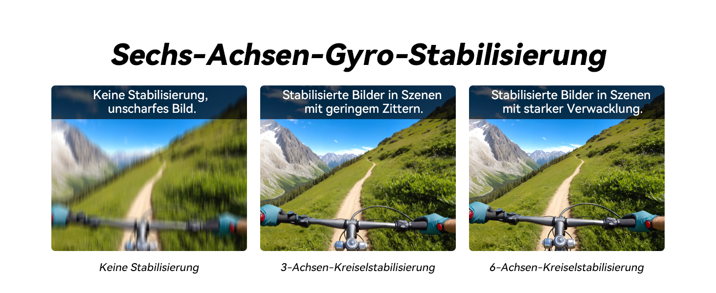 📳【Six-axis Gyro Stabilization】: Die SJCAM SJ11 4K-Sportkamera verfügt über eine sechsachsige gyroskopische Bildstabilisierung, die im Vergleich zu herkömmlichen dreiachsigen stabilisierten Sportkameras bei der Aufnahme von Extremsportarten und Outdoor-Aktivitäten wie Radfahren, Motorradfahren, Fallschirmspringen oder Skifahren eine Rundum-Bildstabilität bietet. Dadurch werden die aufregenden Momente klarer und die Volg-Aufnahmen sehen perfekt gerade aus. Hinweis: EIS unterstützt nicht die Modi 1080P120fps, 720P60/120fps sowie den digitalen Zoom, wenn Sie EIS einstellen.