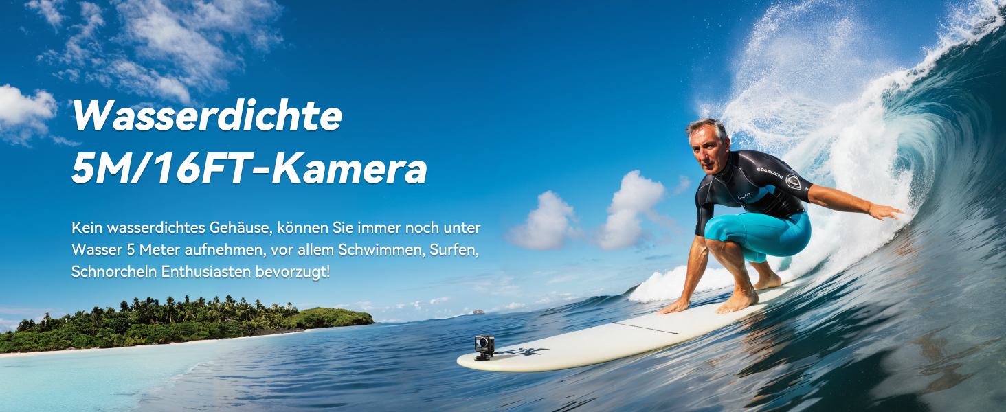 🏄️【Unterwasserkamera 5M Body Waterproof】: Wasserdicht bis 5 Meter ohne wasserdichtes Gehäuse, können Sie die wunderbaren Momente des Surfens, Schnorchelns, Wasserparks und anderer Wassersportarten aufnehmen. Mit einem speziellen wasserdichten Gehäuse können Sie unter Wasser arbeiten und Videos in mehreren Szenen aufnehmen. Das robuste Gehäuse kann dem Druck von 30 Metern Wasser standhalten, so dass Sie auch in tiefen Gewässern arbeiten können.