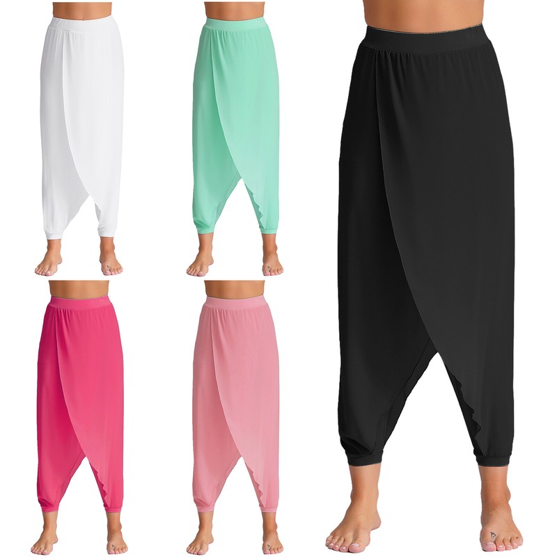 This dance pants for women is made of high quality polyester fabric and chiffon fabric, breathable and comfortable o wear.