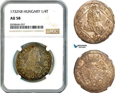 AK549, Hungary, Charles III, 1/4 Taler 1732 NB, Nagybanya Mint, Silver, NGC AU58