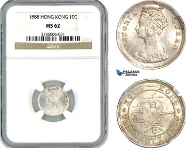 AK598, Hong Kong, Victoria, 10 Cents 1888, London Mint, Silver, NGC MS62