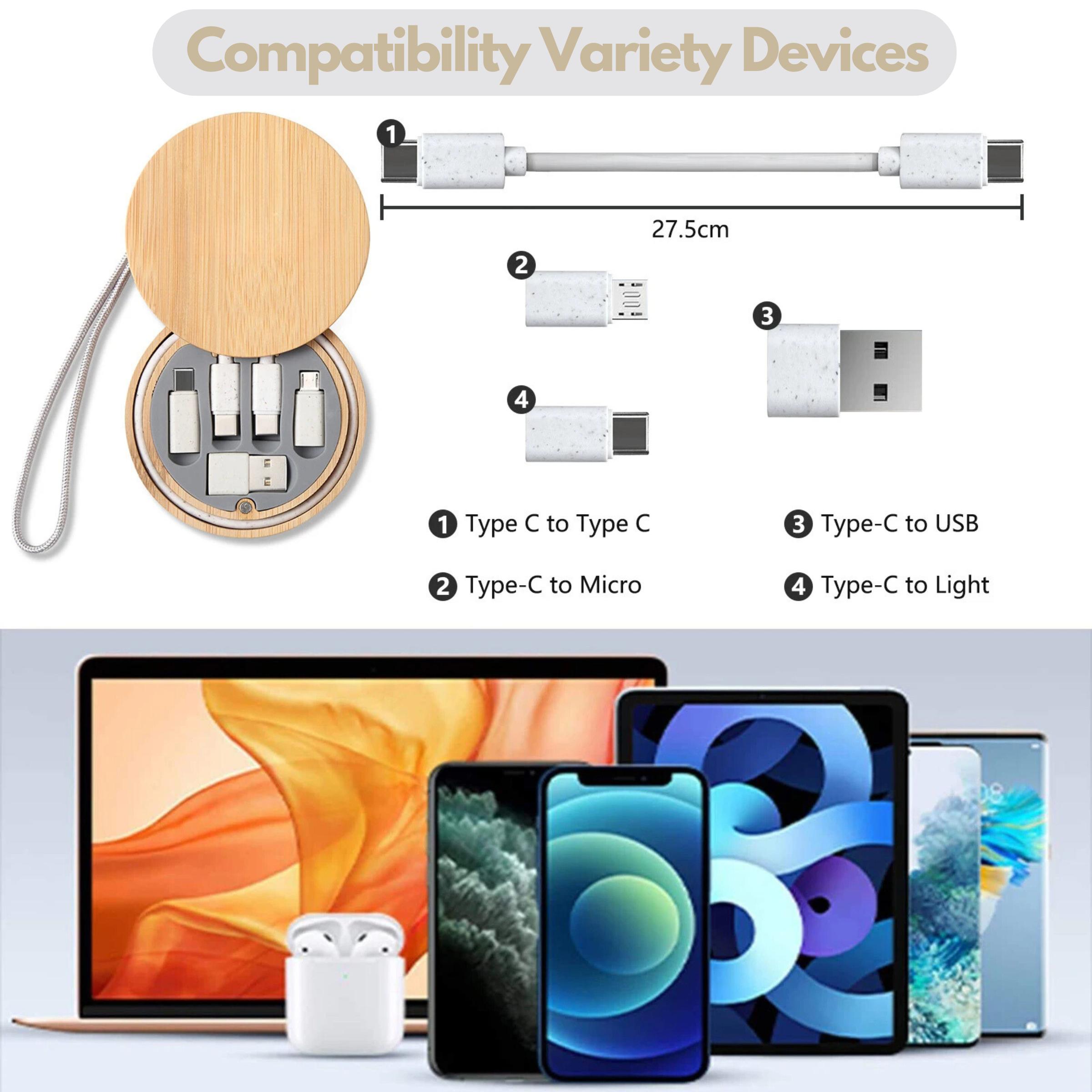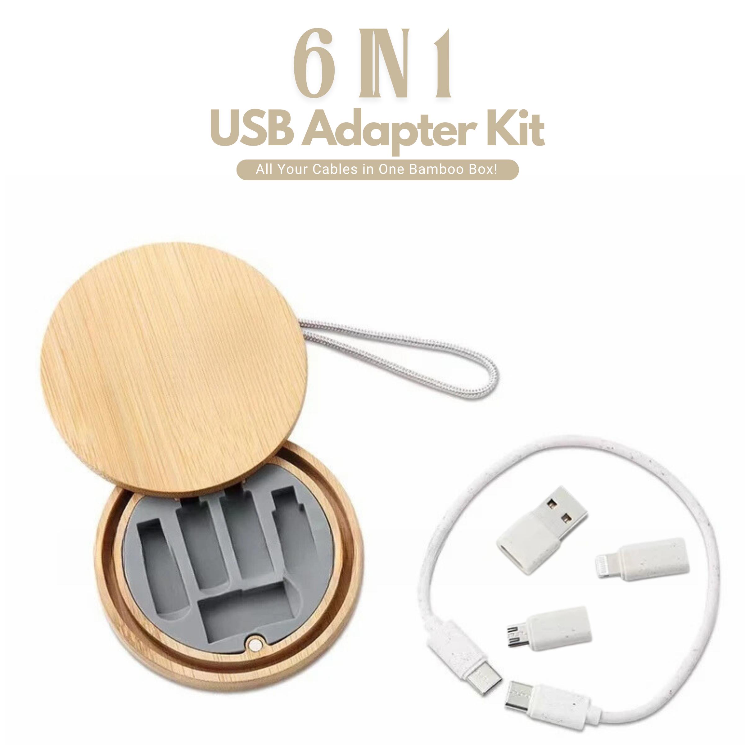 - 6-in-1 Bamboo USB Adapter Storage Kit with Magnetic Closure. Eco-Friendly, and Perfect for On-the-Go