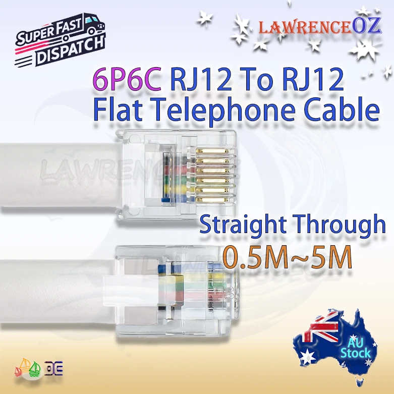 Standard 6P6C design, compatible with all RJ12 connections and used for patching between wall sockets,ADSL/ADSL2+ adapter outputs, patch panels or communications data equipment to your telephone system or handset base unit telephone and many other applicaitons.