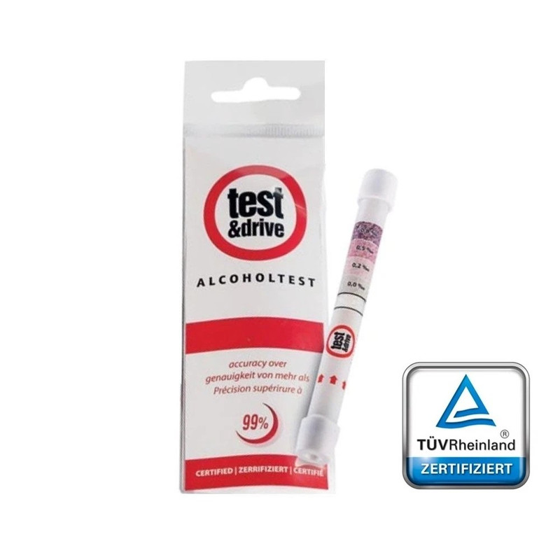 | Die zertifizierten und TÜV Geprüften Alkoholtests ”Test&Drive” ermöglichen eine zu 98% genaue Messung des Alkoholgehaltes. Die kinderleichte und mit Bilder versehene Anwendung ermöglicht ein Ergebnis in 2-3 Minuten. | ||||||||