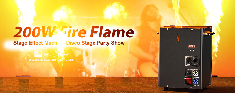Die Flammenmaschine eignet sich für verschiedene Fernsehauftritte, große oder mittelgroße Outdoor-Disco-Shows und Konzerte, Partys usw. Sie ist ein wichtiger Bestandteil der Bühneneffekte. Die Art der Feuermaschinen schafft wunderbare und schöne Flamme, die Höhe der Flamme kann 4 Meter erreichen.