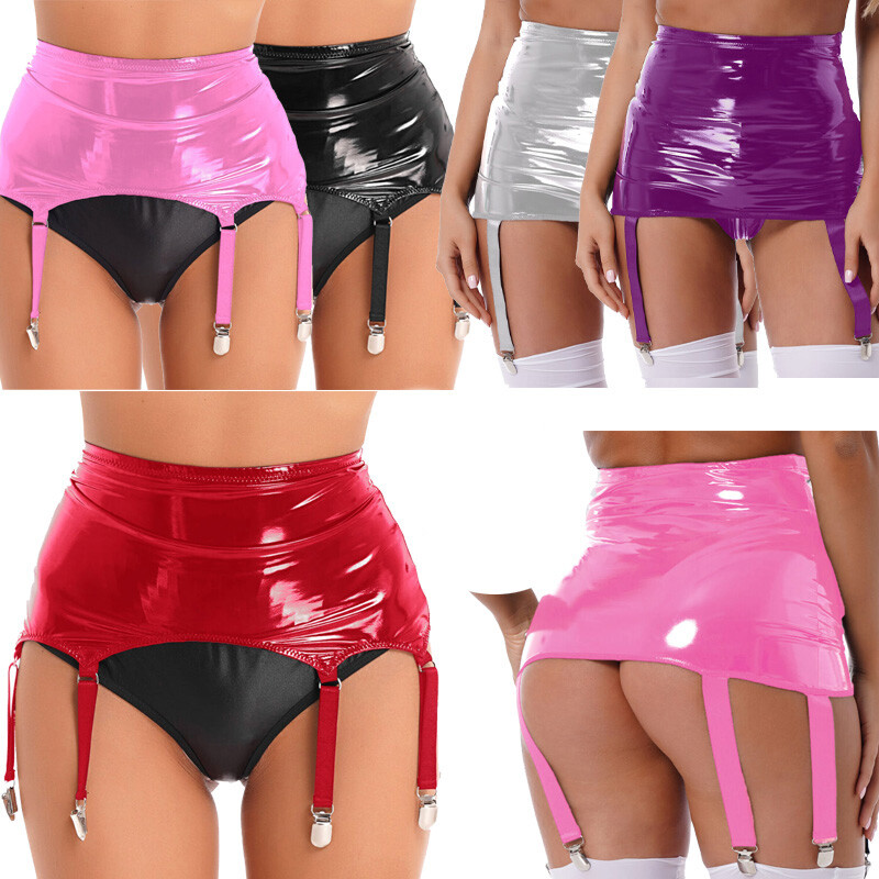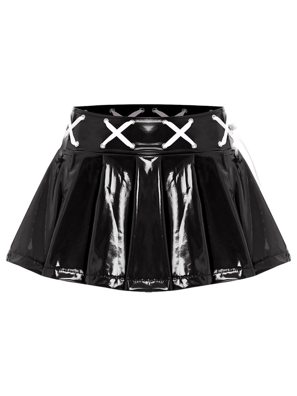 The patent leather skirt is crafted with eyelets and cross lace-up ribbon at the waist, which makes you look stylish and attractive.