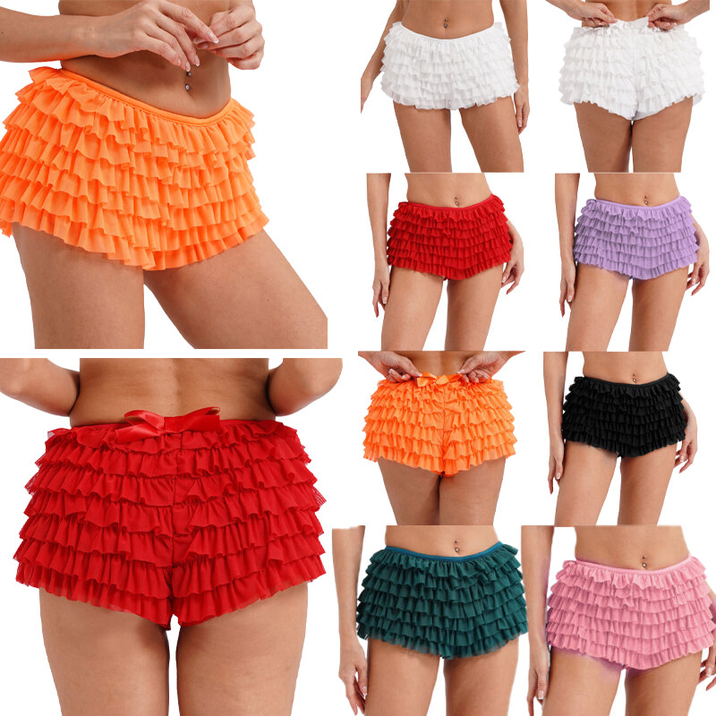 Womens Pleated Skirt Festival Miniskirt Dance Lingerie Lace-up Ribbon Micro