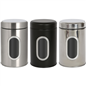 • With its sleek stainless steel construction, this handy holder will make for a sturdy storage solution on any kitchen side or cupboard, with a rugged brushed metal finish bringing cool, contemporary style.• The clear window lets you see in an instant the contents of each canister - perfect for those who always feel particularly bleary-eyed first thing in the morning!• Each pot comes with a matching metal lid that locks in freshness and flavour, helping to ensure a satisfying sip with every steep!