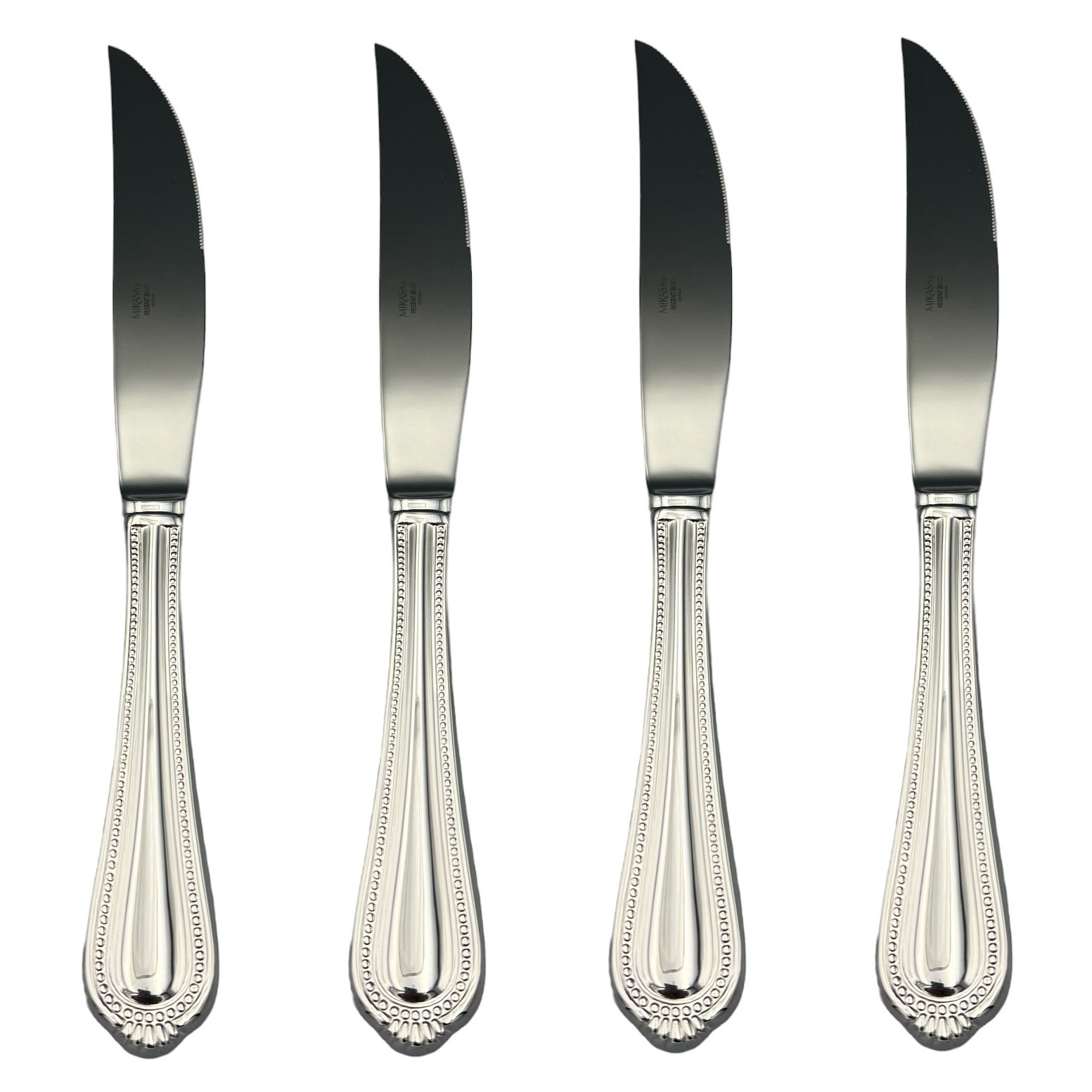 Offered is a Set of Four Steak Knives in the Regent Bead pattern by Mikasa.