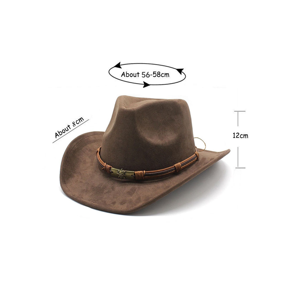 1.Material:The cowboy hats for women is made of suede material, which makes the hat feel soft, smooth and light to the touch.