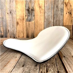Old School Stye And Comfort. 2017-2025 Triumph Bobber 15" wide and 14" long" White Leather With Black Stiching Spring Solo Tractor Seat.