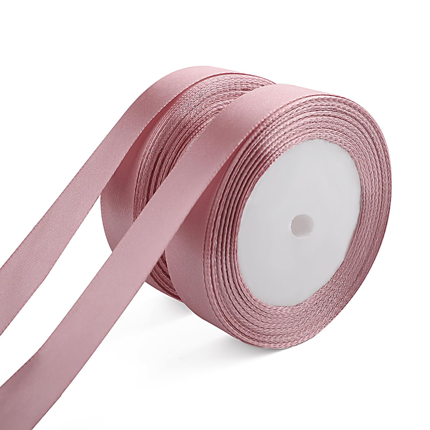 2 PCS Pink Solid Color Satin Ribbon,0.8 Inches x 25 Yard Spool,Use for Gift Wrapping, Bows Bouquet,Crafts, Hair Bows Making, Wedding Party Decoration and Other Sewing Projects