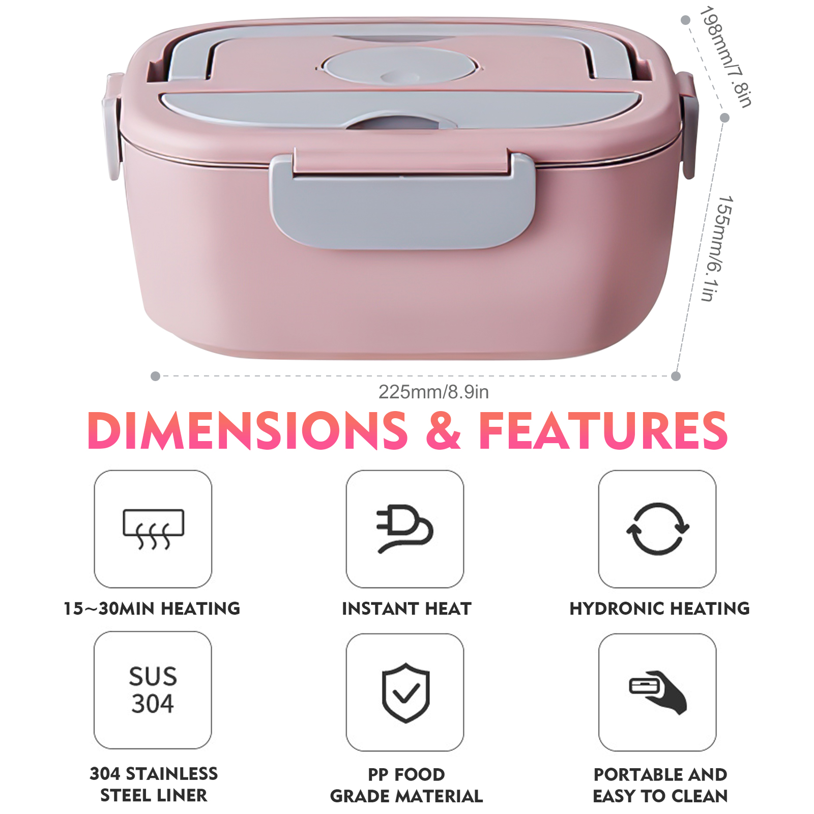 【65W Fast heating】Our electric heating lunch box uses an upgraded 60W power supply for heating, once plugged in, the heating lunch box will heat up in 25-35 min. This food heating lunch box is designed with circulating heat to keep your food nutritious and fresh. It not only heats your meals quickly, but is also easy to clean and dishwasher safe.