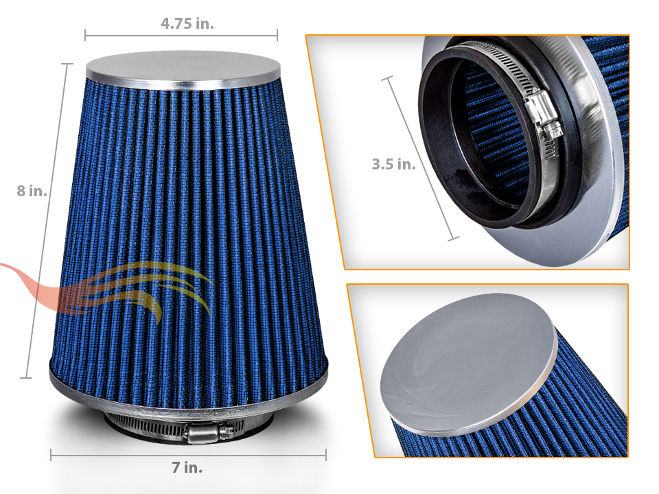 - It comes with a washable and reusable cone air filter and a clamp