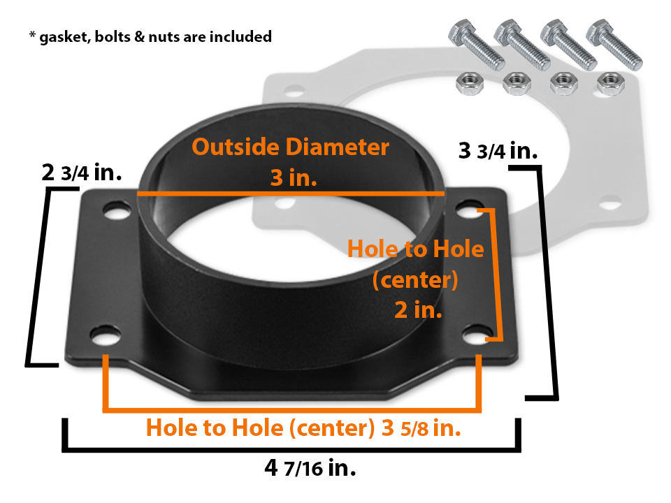 A Brand New BCP 3" Mass Air Flow Sensor Adapter For 1987-1999 Nissan Maxima 3.0L V6 Engine 1996-2000 Nissan Pathfinder 3.3L V6 Engine 2001-2002 Nissan Pathfinder 3.5L V6 Engine 1999-2002 Nissan Quest 3.3L V6 Engine 1998-2001 Nissan Altima 2.4L L4 Engine 1995-1999 Nissan Sentra 1.6L L4 Engine 1995-1998 Nissan 200SX 1.6L L4 Engine 1990-1996 Nissan 300ZX 3.0L V6 Engine 2000-2004 Nissan Xterra 3.3L V6 Engine (NA or Surcharged) 1999-2004 Nissan Frontier 3.3L V6 Engine (NA or Supercharged) 1996-1999 Infiniti I30 3.0L V6 Engine 1993-1997 Infiniti J30 3.0L V6 Engine 1997-2001 Infiniti Q45 4.1L V8 Engine 1997-2000 Infiniti QX4 3.3L V6 Engine 1999-2002 Mercury Villager 3.3L V6 Engine 1998-1999 Subaru Forester 2.5L H4 Engine 1993-1997 Subaru Impreza 1.8L H4 Engine 1995-1998 Subaru Impreza 2.2L H4 Engine 1993-1998 Subaru Legacy 2.2L H4 Engine 1998 Subaru Legacy 2.5L H4 Engine ![]() *Due to monitor differences, actual product colors in the picture may vary slightly from what appears online.