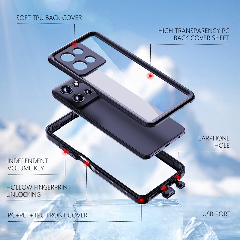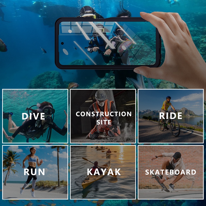 IP68 Waterproof:The Phone Case is IP68 Waterproof Certified, submerged to 6.6'/1.5 m for 20 minuites. And the waterproof case is perfect for outdoor activities like swimming, snorkeling, surfing and more. We suggest doing waterproof test to the case, before taking it into water with a phone in it.