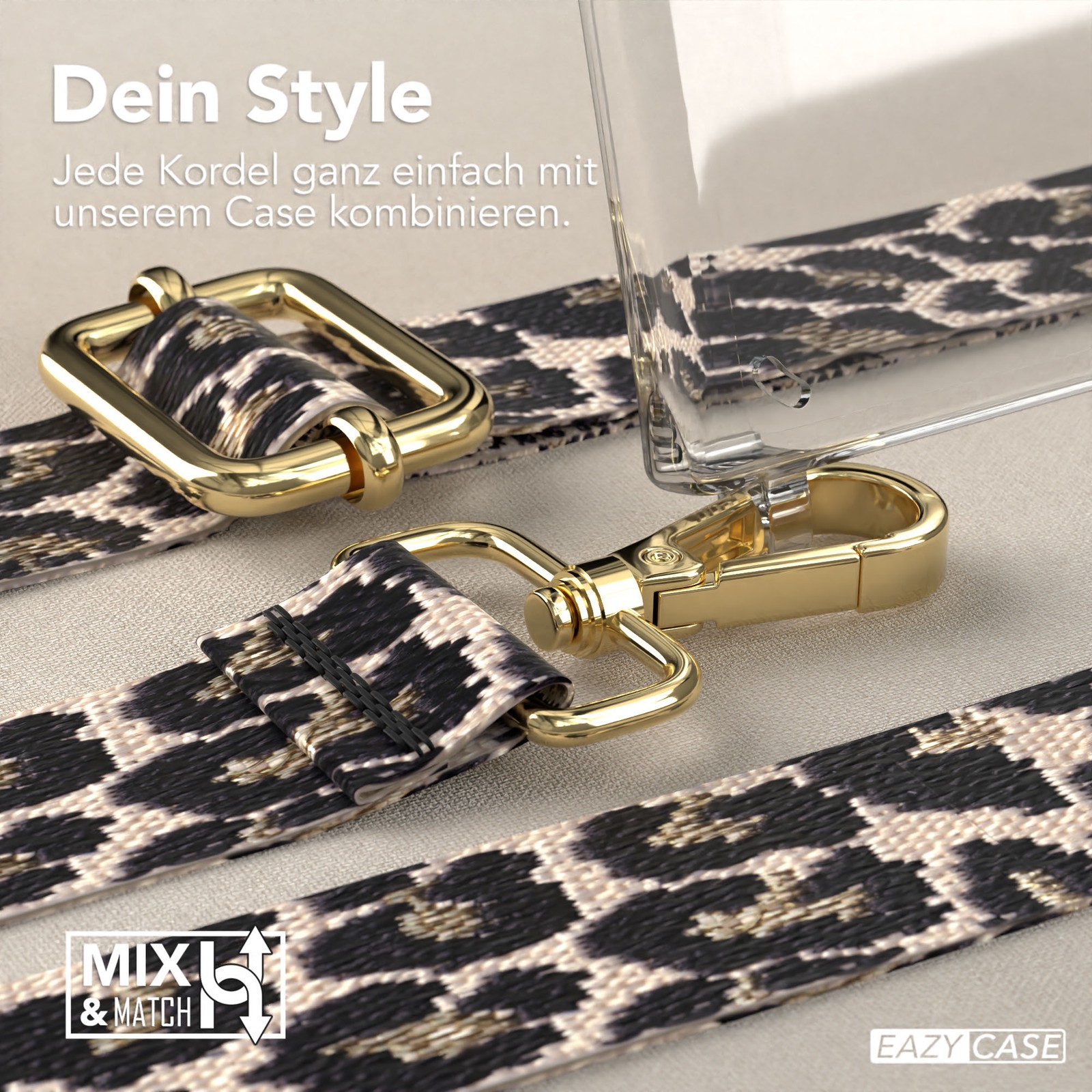Die EAZY CASE Handykette erlaubt dir ein Fashion-Statement der besonderen Art: Mit dem Ersatzband stimmst du sie im Nu auf dein Outfit ab und schaffst ein DIY-Highlight. Verstellbar von 90 bis 145 cm, schmiegt sich der Taschenriemen jeder Situation an. Exquisite Metallapplikationen, kunstvoll integrierte Kunstleder-Details und elegante Karabiner fügen sich harmonisch in das Gesamtbild ein und unterstreichen deinen individuellen Stil.