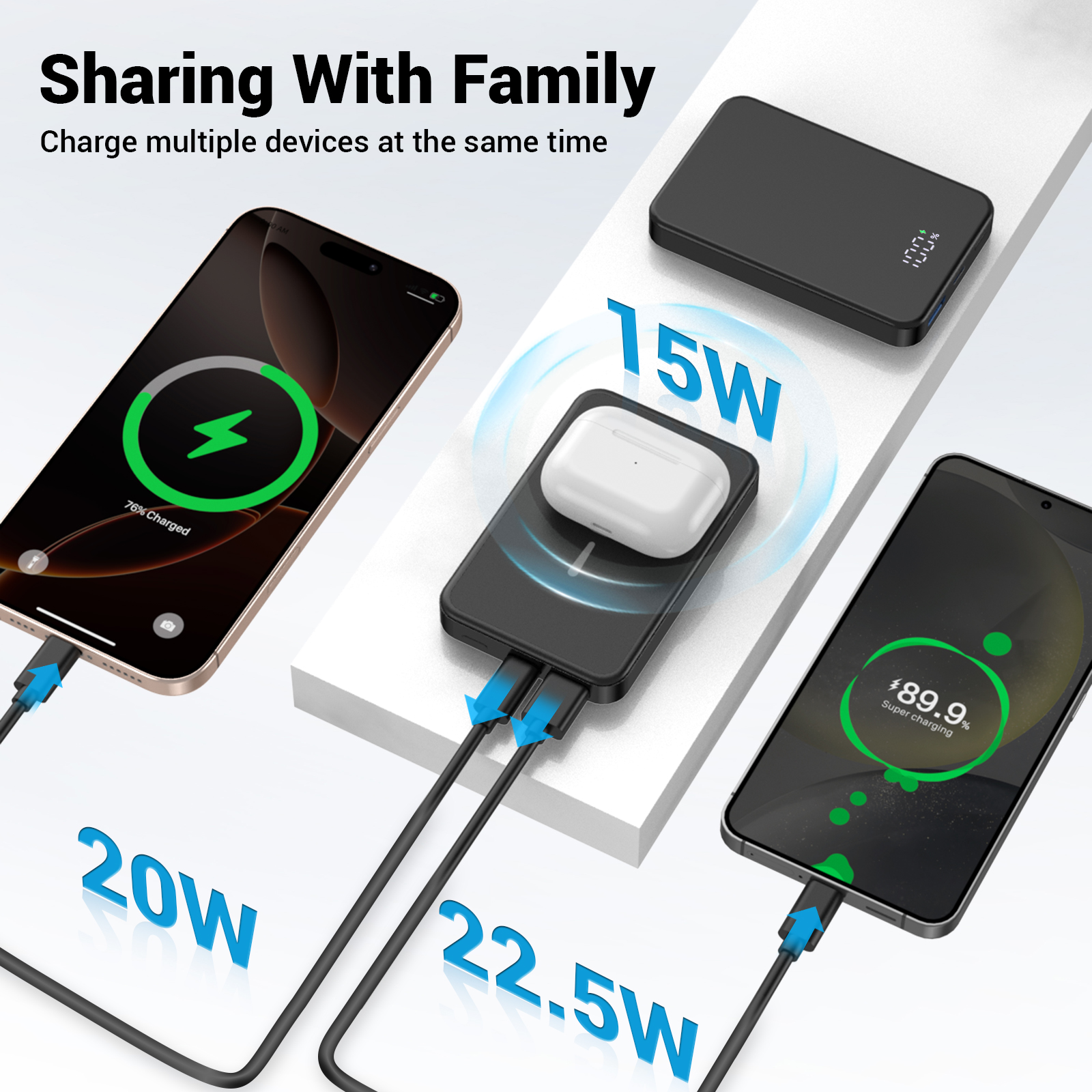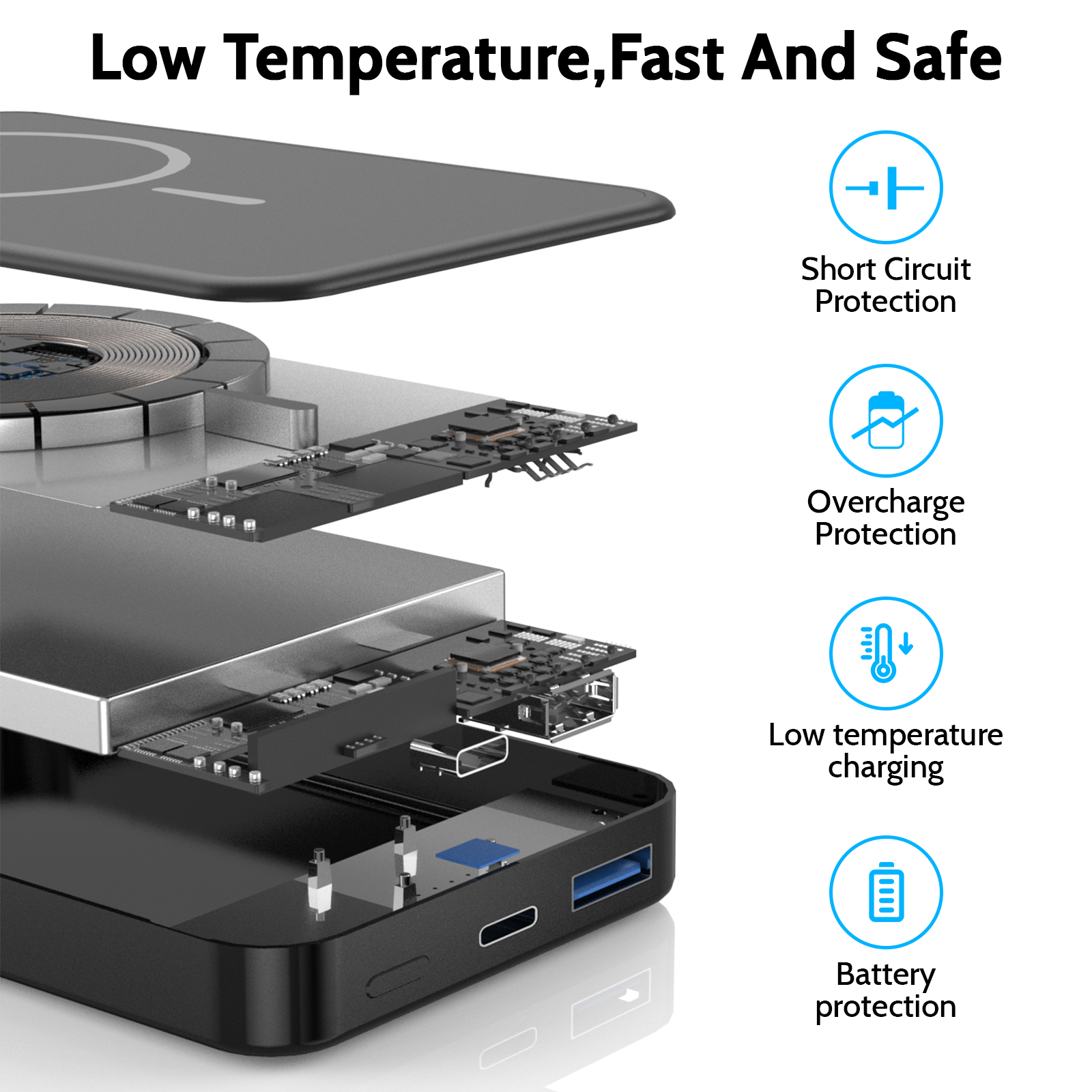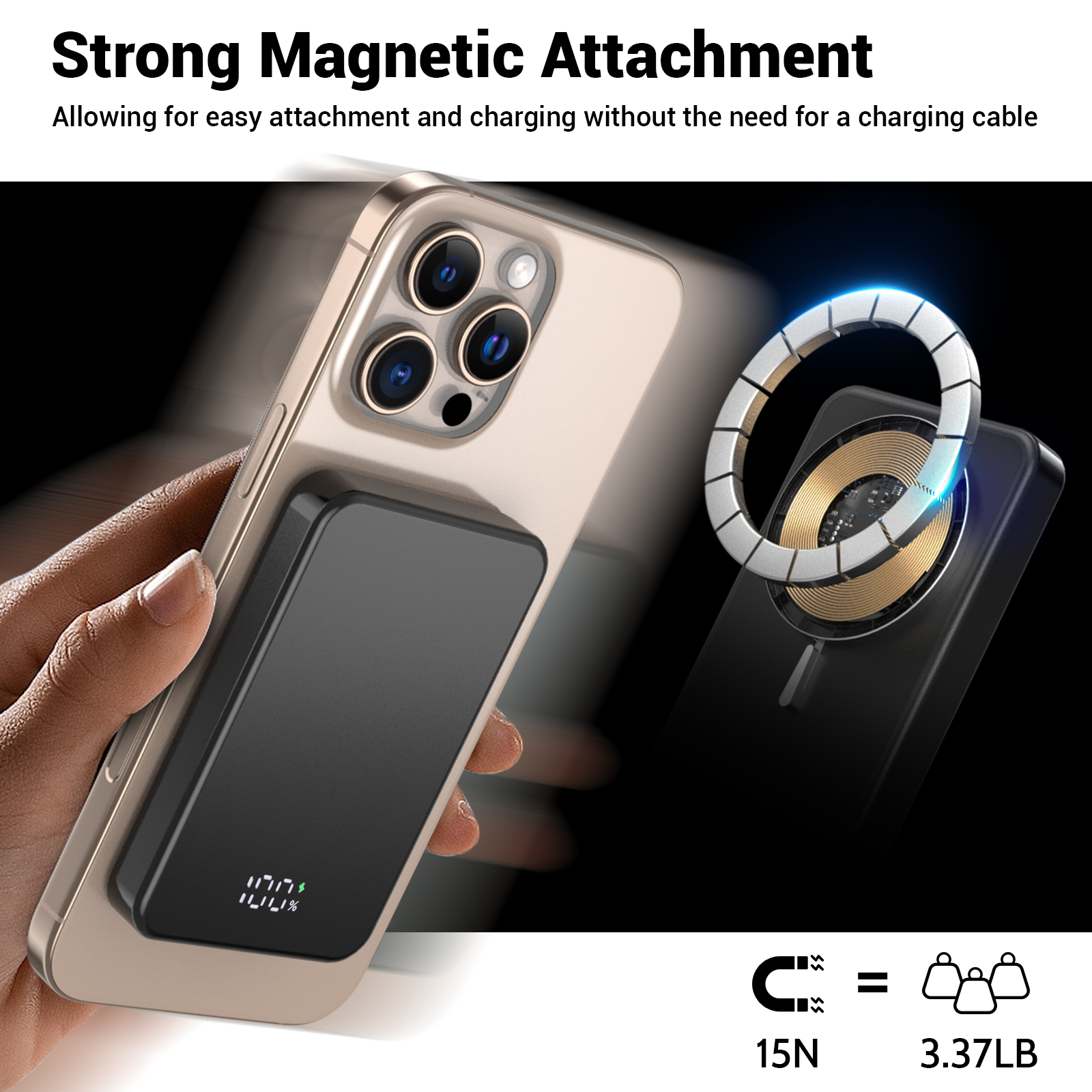 10000mAh Power Bank Magnetic Battery Pack Wireless Charger for iPhone 16/15/14