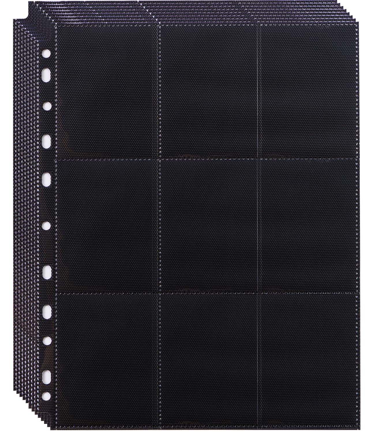2, Double-Sided 9 Pocket Page Protector: This trading card sleeves provide double capacity that you can put total 18 cards in both sides of the sheet. They are suitable for any standard 3-ring binder