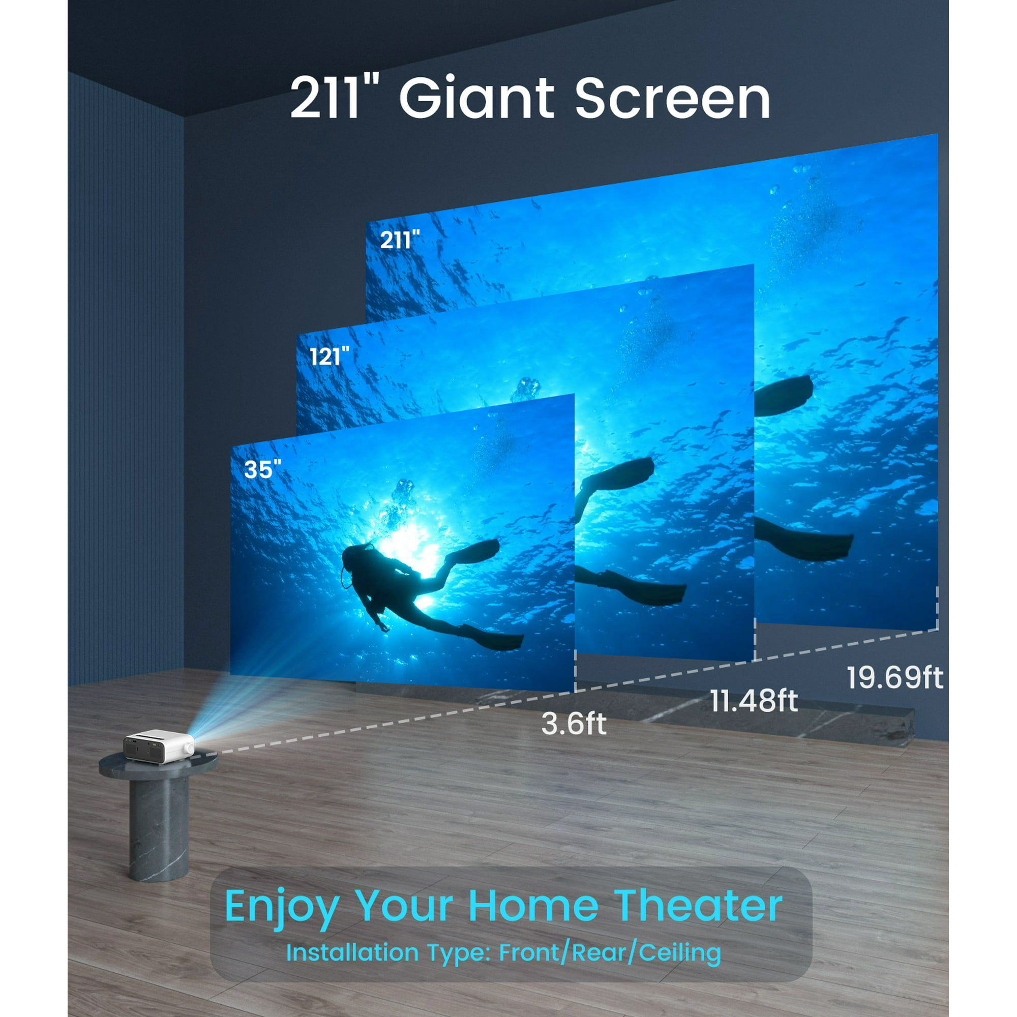 Viewing size ranging from 35"-211" is perfectly meeting your projection needs in different scenes. You can also get the best viewing angle and watching size with keystone correction and focus adjustment. Upgraded Hi-Fi stereo sound and noise depression system bring you a higher and clearer audio experience, perfect for indoor or outdoor movie nights!