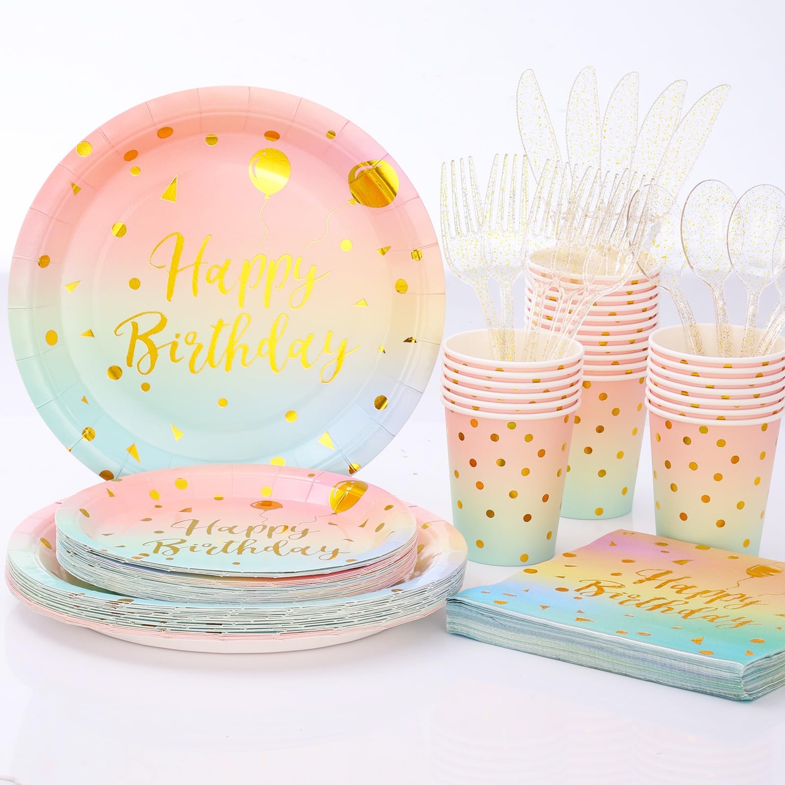 - 🌟 Dazzle Your Guests, Simplify Your Prep! 🌟 Throw the ultimate birthday bash without the cleanup chaos! Our 24-person Disposable Party Set combines eye-catching and practicality, designed to turn every bite, sip, and laugh into a memory worth celebrating. With 168 pieces (including brithday plates, cups, napkins, and utensils), you’ll have everything needed to host a crowd—effortlessly!