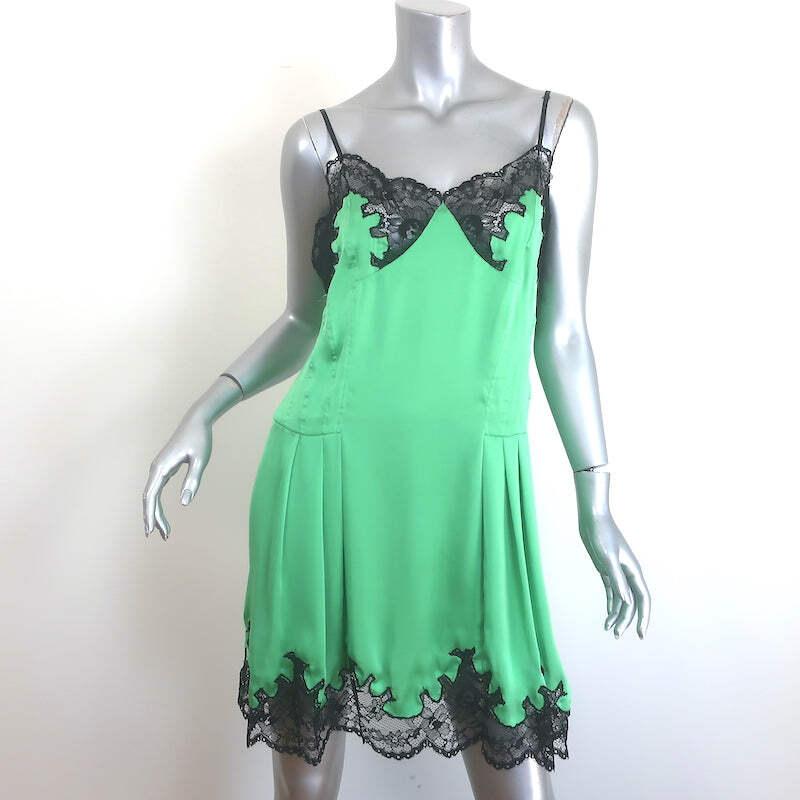 Paco Rabanne Lace-Trim Mini Slip Dress Light Green Pleated Satin Size 42
