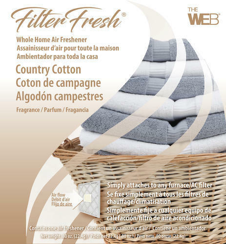 Country cotton scent filter fresh whole home air freshener pad, attaches instantly to any furnace/AC filter, delivers whole home fragrance, eliminates unwanted odors, when your system is running experience a gentle scent that will last for days, contain an odor counteracting working with the fragrance to help eliminate odors, carbonizes dried coconut shells within an enclosed Self sustaining system, converting harmful emissions into useful thermal energy, use to scent small areas like closets, bathrooms & even vehicles.