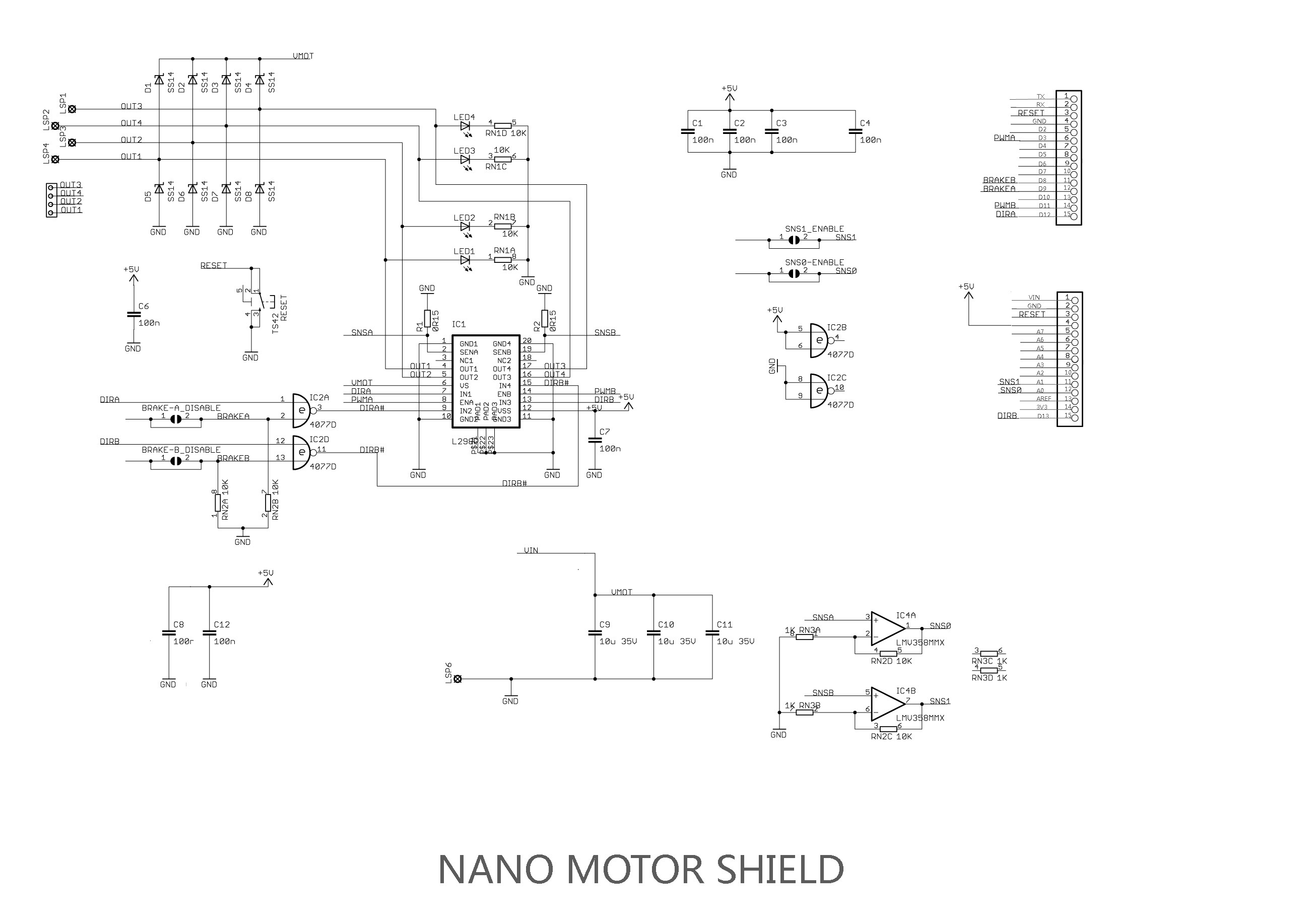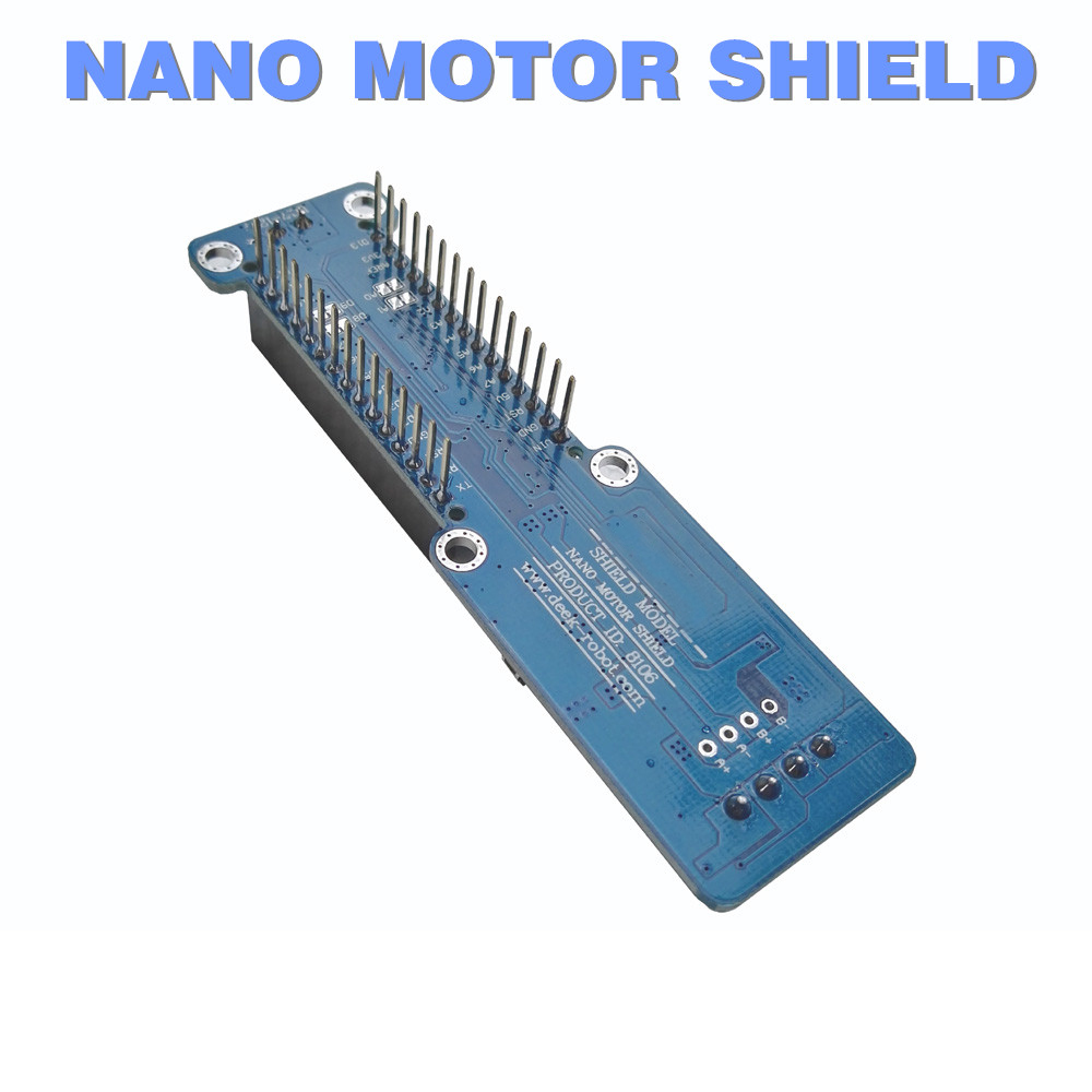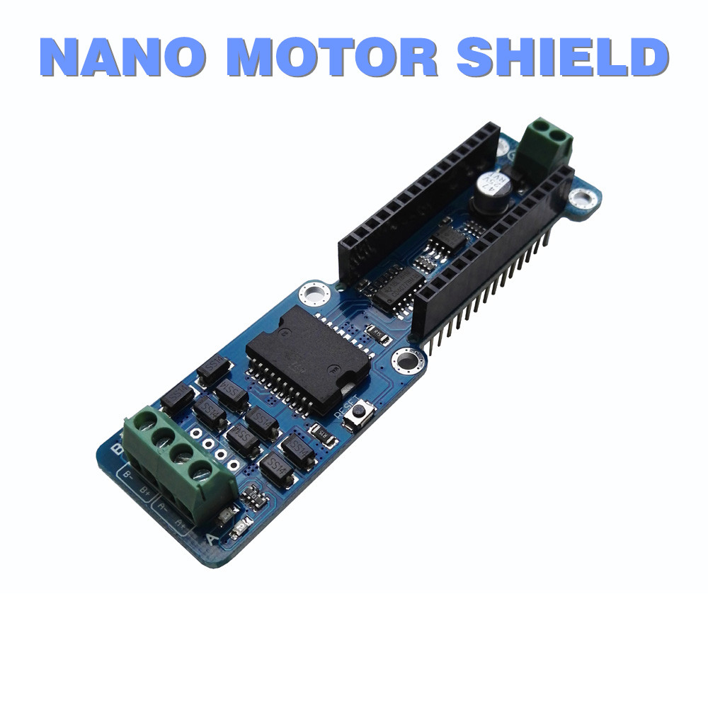 The NANO Motor Shield is based on the L298P, which is a dual full-bridge driver designed to drive inductive loads such as relays, solenoids, DC and stepping motors. It lets you drive two DC motors with your Arduino NANO board, controlling the speed and direction of each one independently. You can also measure the motor current absorption of each motor, among other features.