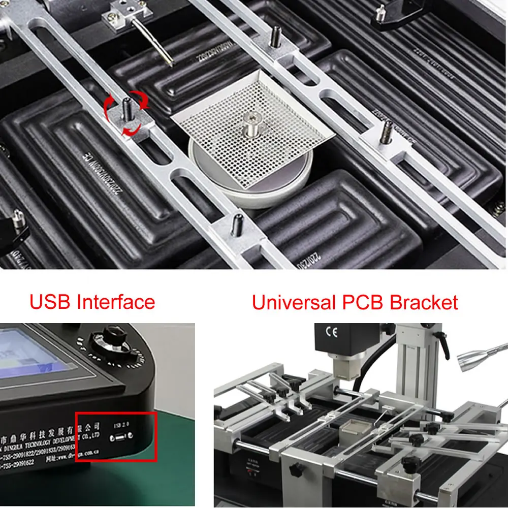 DH-5830 Hot Air BGA Chips Rework Station Touch Screen 3 Independent Heater Temperature Zones SMD PCB Soldering Repairing Machine