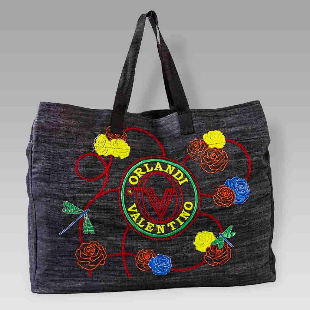 Valentino Orlandi Oversized Purse Bag Expandable Beach Tote Embroidered Denium Caryall Italian Designer Handbag – $795 Retail Price! One of a kind masterpiece from italian designer Valentino Orlandi. Made exclusively in Italy. Remarkable tote in hand embroidered denium will do double duty as a chic city carryall and as gorgeous beach tote or even a diaper bag. Oversized carryall classic tote shaped bag will fit all your daily essentials. Its a perfect addition to your daytime wardrobe. Featuring a fully expandable inner compartment, sturdy handles and a reinforced bottom. All new 2023 Marino Orlandi Collection! Directly from Italy!Ultimate luxury at the fraction of the cost! Absolutely one of kind rare bag from “Valentino Orlandi”.