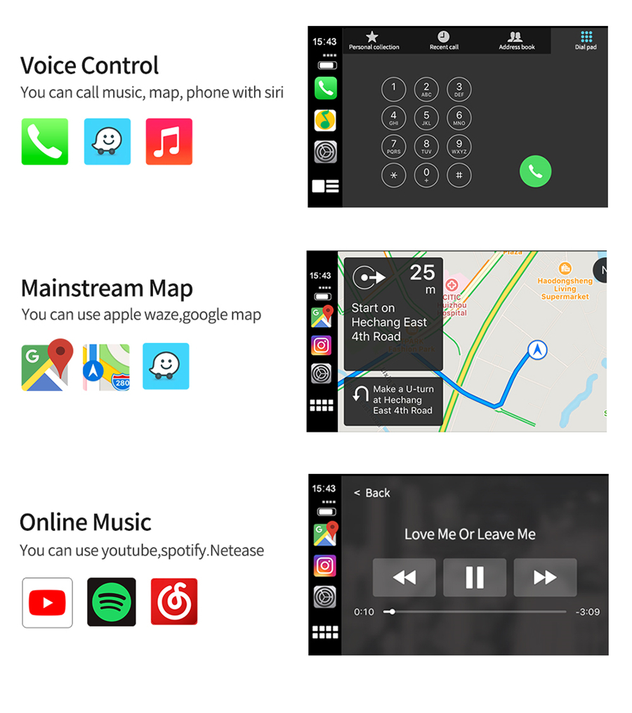 This car play dongle can get help from your phone, without taking your hand off the wheel. Support both for Android and iOS system.