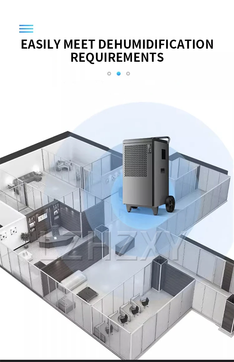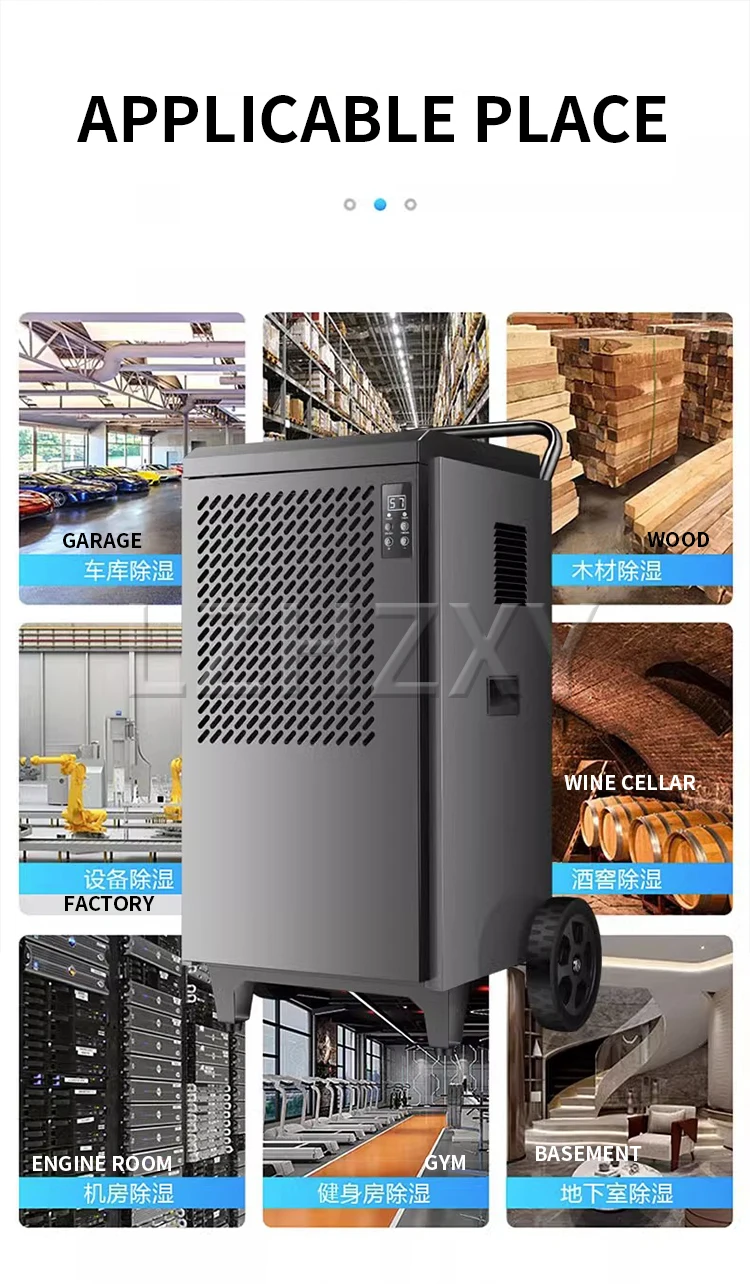 Name: Industrial grade dehumidifier Model: BGD1702-138 Power: 1250W Voltage: 220V 50Hz Dehumidification capacity: 138L/D weight: 52KG Size: 560*510*910MM