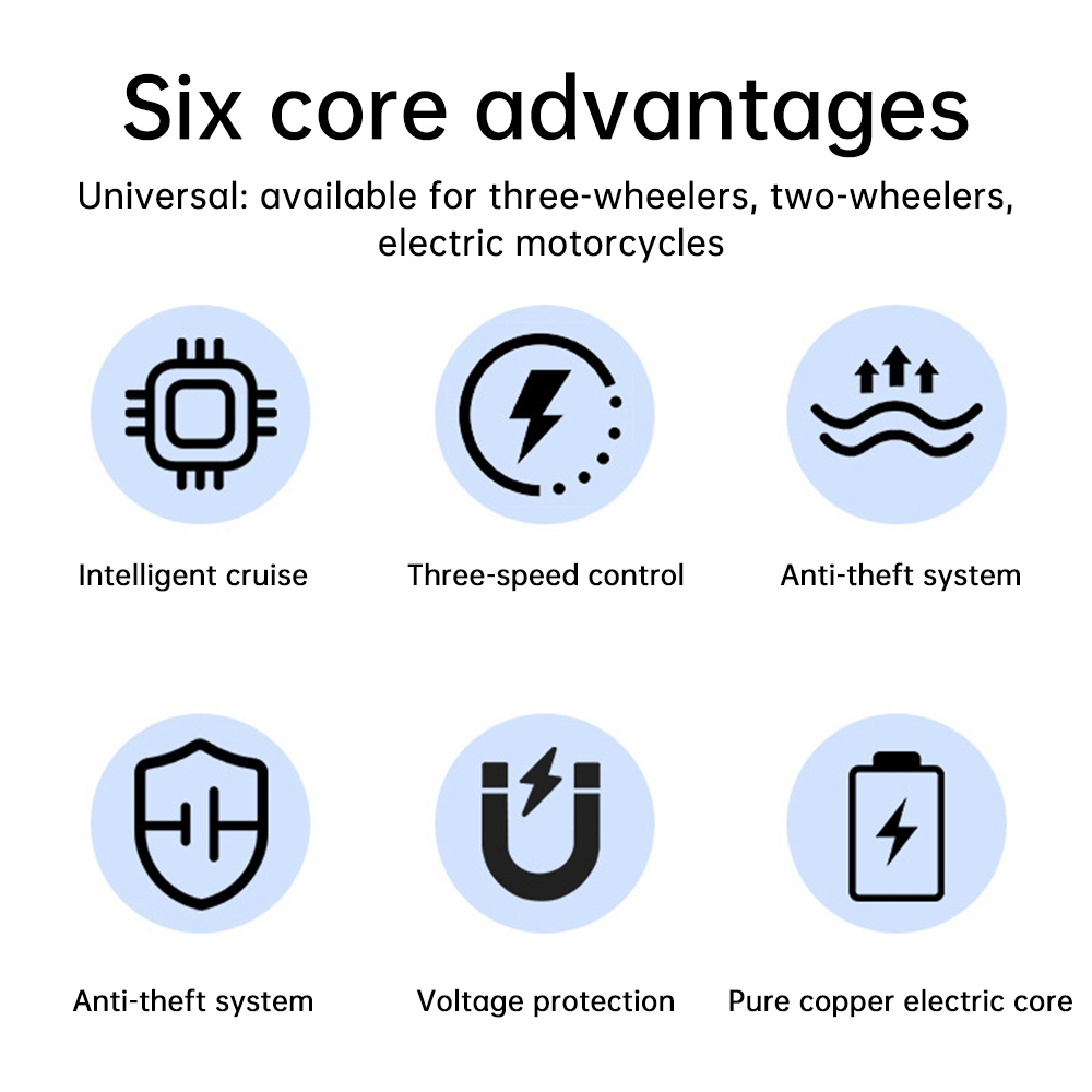 Product features: switch three-speed, intelligent cruise, anti-theft, reverse