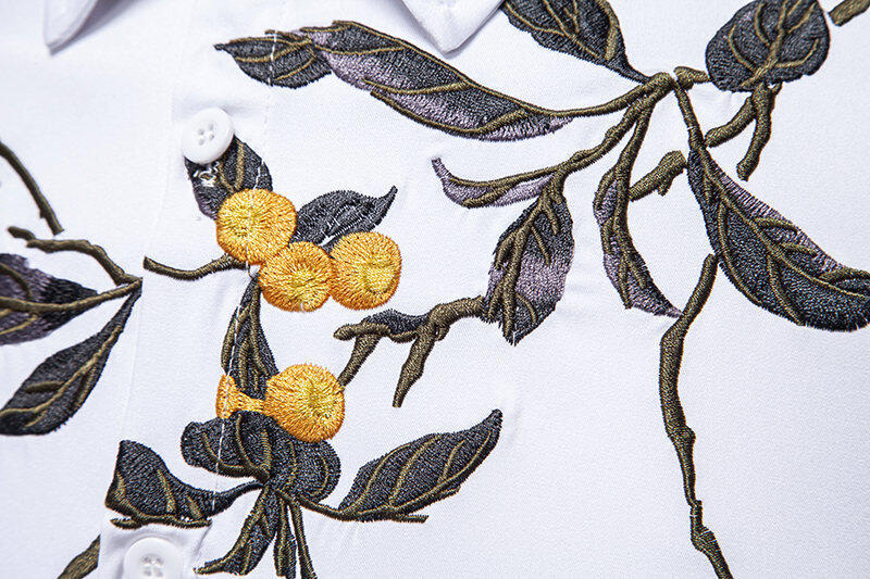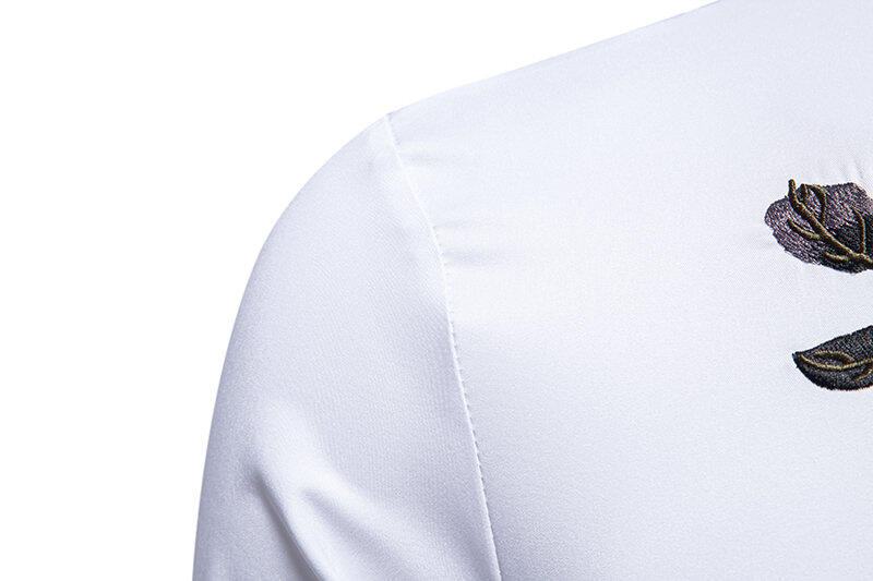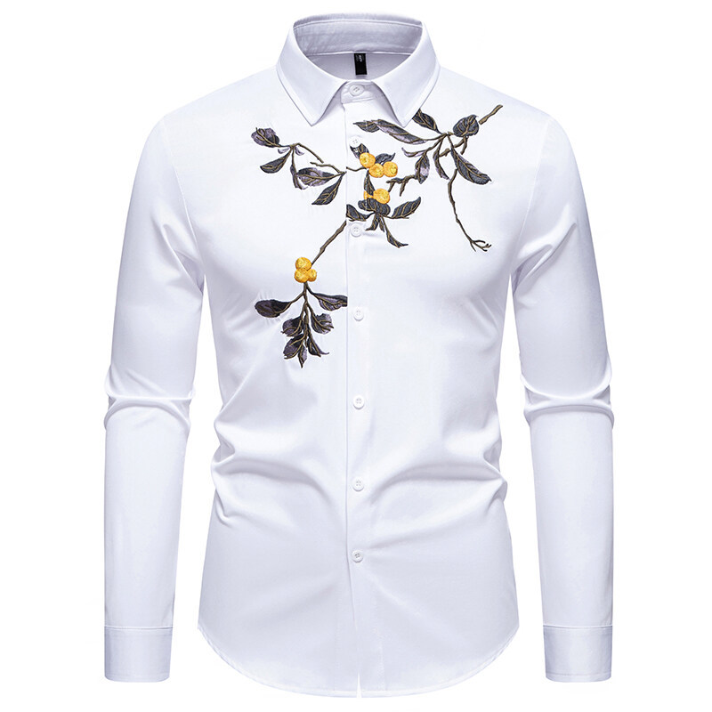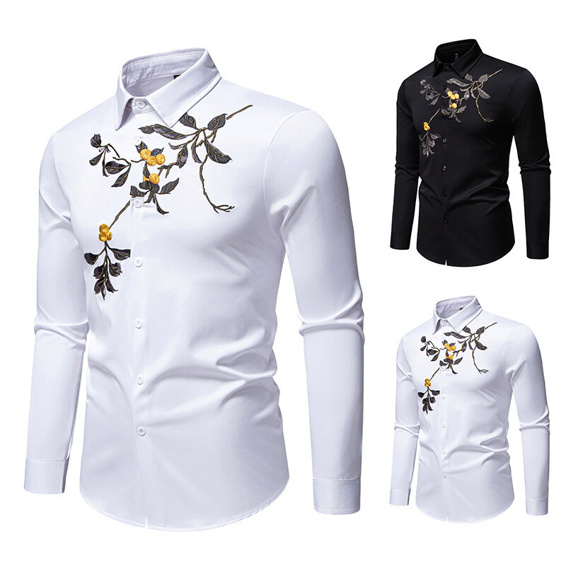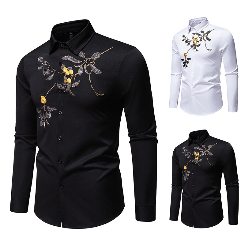 New Men Flower Embroidery Long-sleeved Shirt Nightclub Retro Base Shirt Cardigan