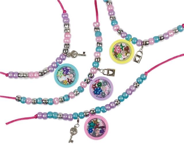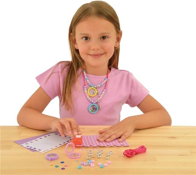 - Complete Jewelry Kit with 4 lockets, charms, beads, sequins, and more.