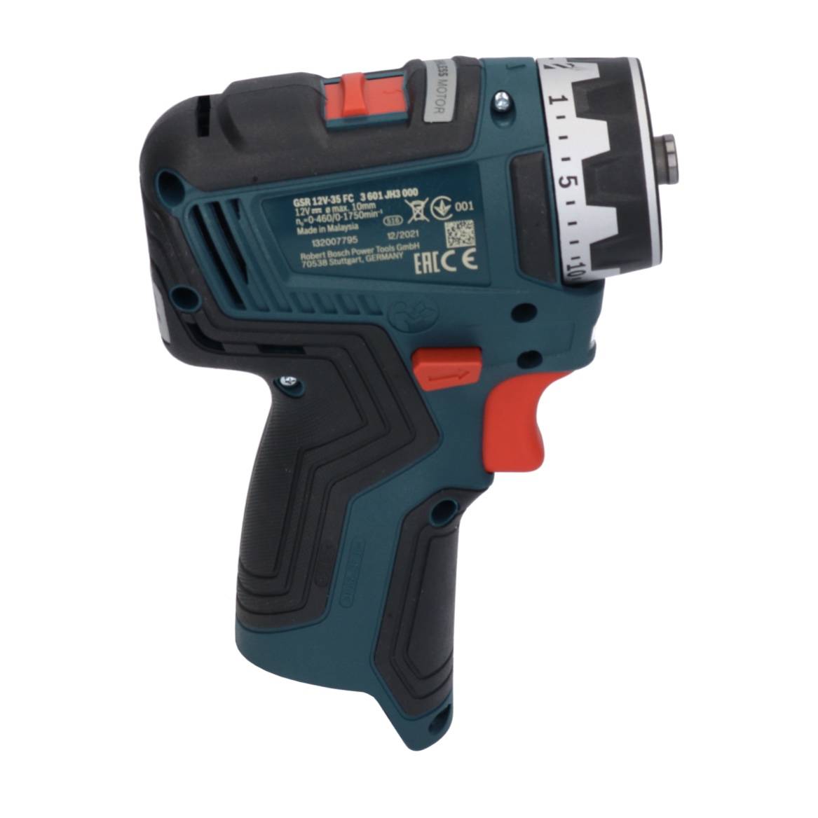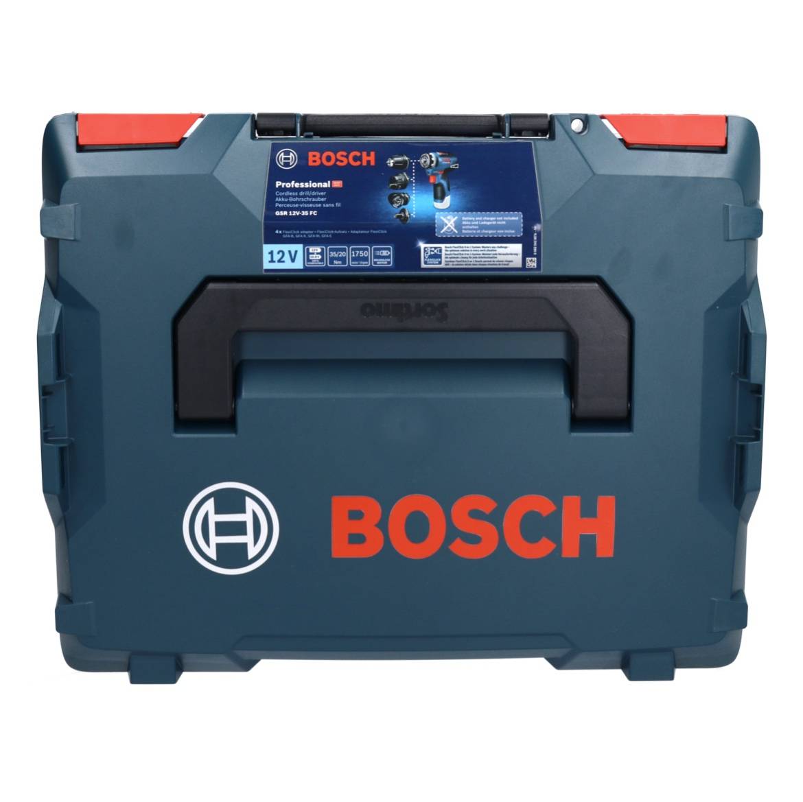 Der Akku-Bohrschrauber GSR 12V-35 FC Professional mit bürstenlosem Motor ist für jeden Einsatz das vielseitigste Werkzeug im 12-Volt-Segment. Sein FlexiClick System umfasst vier Zubehörteile (10-mm-Bohrfutter, arretierbarer Bithalter, Winkelaufsatz (rechtwinklig) und Exzenteraufsatz), die einfach gewechselt, miteinander kombiniert und justiert werden können und so bis zu 8 Konfigurationen und damit höchste Flexibilität bieten. Extrem kompakt bei (mit 35 Nm und 1.750 U/min) gleichzeitig hoher Leistungskapazität bietet das Werkzeug optimale Handlichkeit und eignet sich damit perfekt für Arbeiten an schwer zugänglichen Stellen. Sein bürstenloser Motor in Kombination mit Electronic Motor Protection bietet Schutz vor Überlastung und sorgt für eine längere Haltbarkeit des Werkzeugs. Dieses Werkzeug eignet sich perfekt zum Bohren und Schrauben in Holz (32 mm) und Stahl (10 mm). Es ist kompatibel mit allen Bosch Professional 12V-Akkus und -Ladegeräten. Der GSR 12V-35 FC Professional ist zudem mit 2 Gängen, Autolock, Gürtelclip/-haken, Bithalter, Ladezustandsanzeige, Electronic Cell Protection, LED-Anzeige, Li-Ion-Akku, Metall-Getriebegehäuse, Rechts-/Linkslauf und Drehzahlvorwahl ausgestattet.