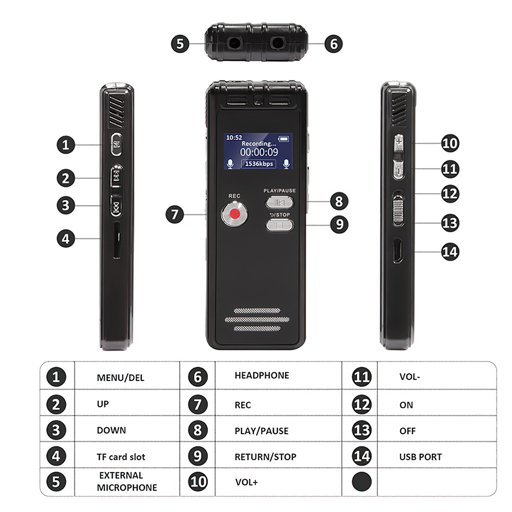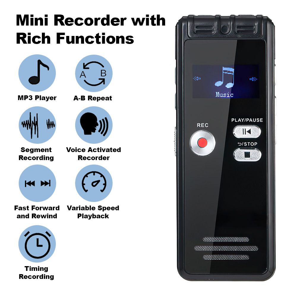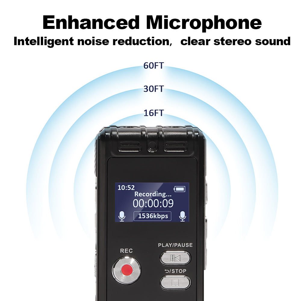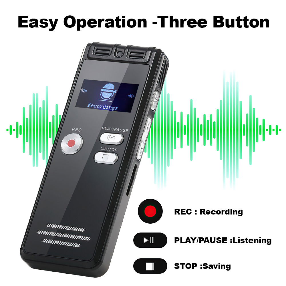 64GB Digital Voice Activated Recorder with Playback Unlock the Power of Recording! Introducing the 64GB Digital Voice Activated Recorder, your ultimate companion for capturing high-quality audio. Perfect for interviews, lectures, meetings, or even ghost hunting, this recorder ensures you never miss a moment. Key Features: Voice Activated Recording: Automatically starts recording when sound is detected, saving both storage and battery life. HD Dual MIC with Noise Reduction: Experience crystal-clear audio thanks to advanced dual microphones and noise reduction technology. Massive Storage: With 64GB capacity, enjoy up to 4800 hours of recording time—plenty of space for all your audio needs. Compact & Portable Design: Lightweight and easy to carry, making it ideal for discreet recordings or capturing EVP during ghost hunts. Specifications: Model: 64GB Digital Voice Activated Recorder Recording Capacity: Up to 4800 hours Microphone: HD Dual MIC with Noise Reduction Storage: 64GB RF Card (Not included) Playback: Available Battery Life: Long-lasting for extended recording sessions Dimensions: Compact and pocket-friendly Package include: 1x Voice Activated Recorder(Not included 64GB memory card)