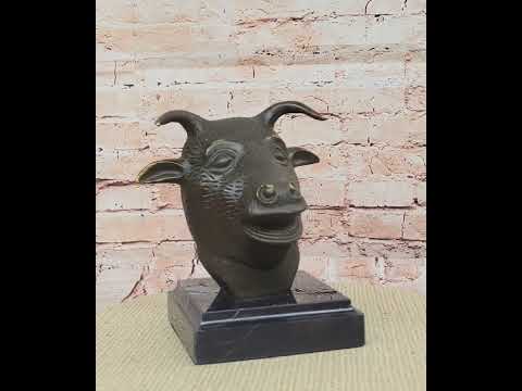 Signed Bronze Fengshui Zodiac Sign Year Ox Bull Animal Head Statue Signed