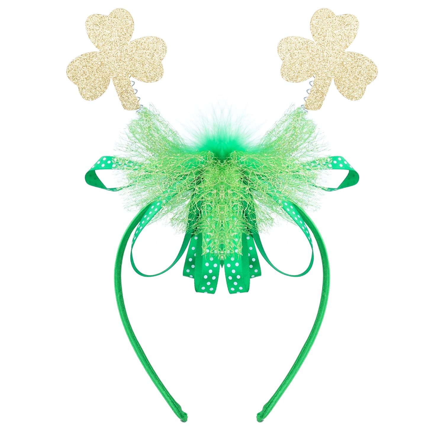 Celebrate St. Patrick’s Day in style with our eye-catching Shamrock Bopper Headband, designed for those aged 15 and up. It features gold shamrocks that glitter on playful springs, complemented by a burst of vibrant green tinsel and charming polka-dotted ribbons for a truly dynamic and festive look. The headband is crafted with a comfortable, flexible band that fits most head sizes, ensuring it stays secure without any discomfort. Despite its durable build, it's lightweight enough to wear throughout any holiday event. This headband transcends St. Patrick's Day—it's a versatile accessory suitable for Irish-themed events, parades, and any occasion deserving a touch of fun and flair. As a festive party favor, these boppers are perfect for office celebrations or get-togethers, sure to invite smiles and imbue the St. Paddy’s spirit.